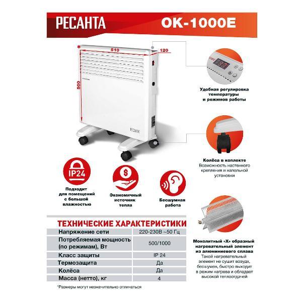 Вы можете купить Конвектор Ресанта ОК-1000Е в магазинах М.Видео по доступной цене. Конвектор Ресанта ОК-1000Е: подробное описание, фото и отзывы реальных покупателей, характеристики, возможность скачать инструкции и подобрать аксессуары.