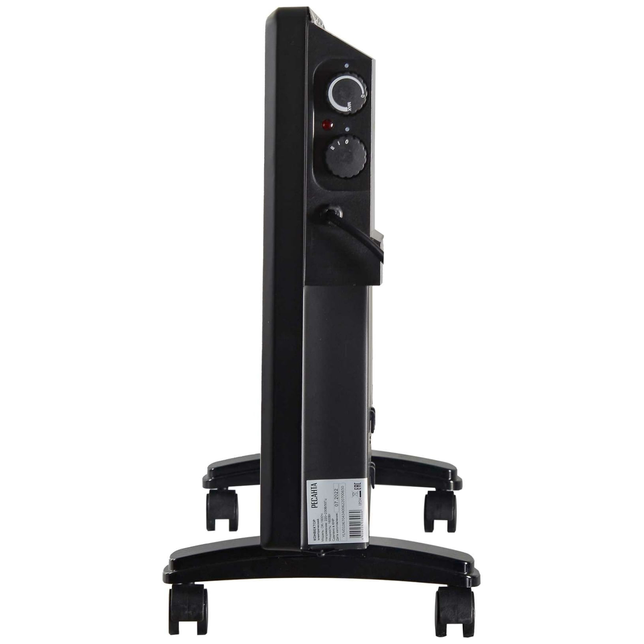 Конвектор Ресанта 67/4/34 черного цвета предназначен для обогрева помещений площадью 20 м² при высоте потолков 2,6 м. Мощность нагрева составляет 1,6 кВт. Настройка параметров осуществляется с помощью механической панели управления. Поддерживаются два режима работы и два температурных режима.