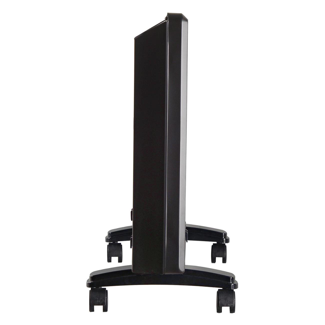 Устройство с монолитным нагревательным элементом работает от сети с напряжением 220 В. Кабель длиной 2 м гарантирует комфортное пользование. Защита от замерзания и отключение при перегрузке обеспечивают безопасность. Прибор габаритами 50х12х83 см и весом 4,85 кг можно размещать настенным или напольным способом. Наличие опор с колесиками упрощает перемещение. Корпус класса IP24 изготовлен из металла, что делает срок службы долгим.