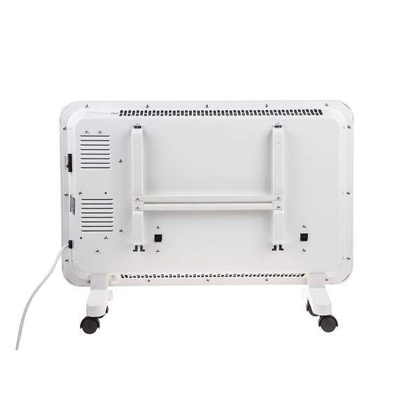 За безопасность отвечают системы защиты: при перегреве и случайном опрокидывании конвектор выключится. Его можно поставить на ножки, снабжённые колёсиками, или повесить на стену. Это позволит сэкономить место в помещении.