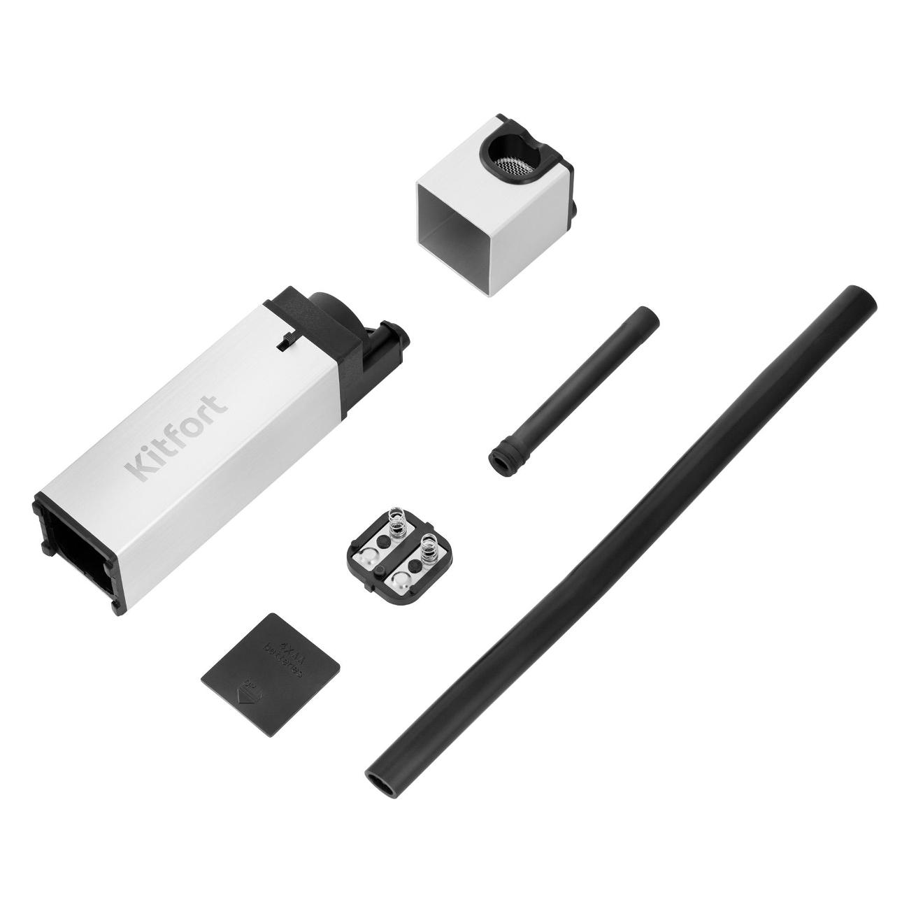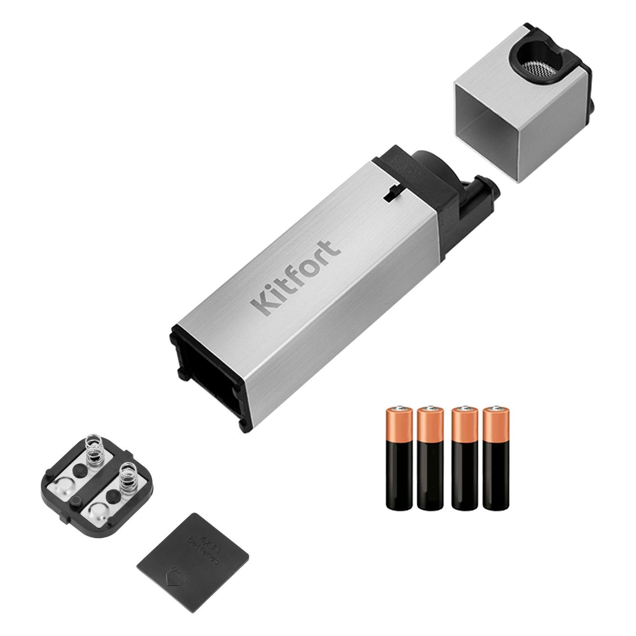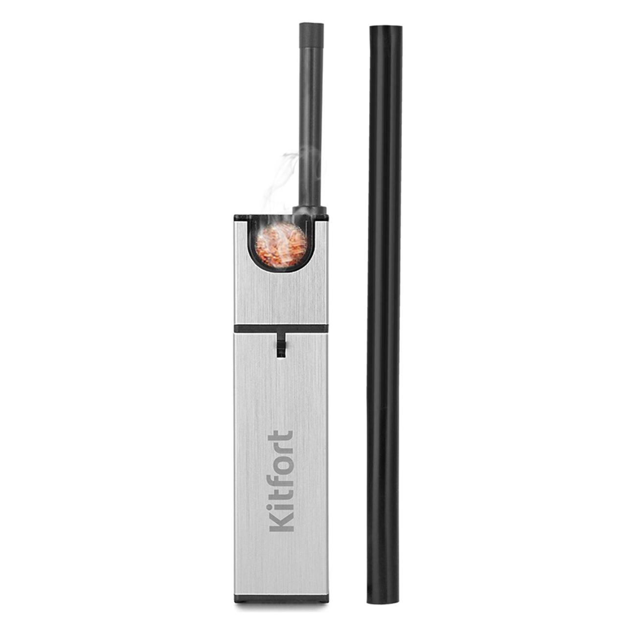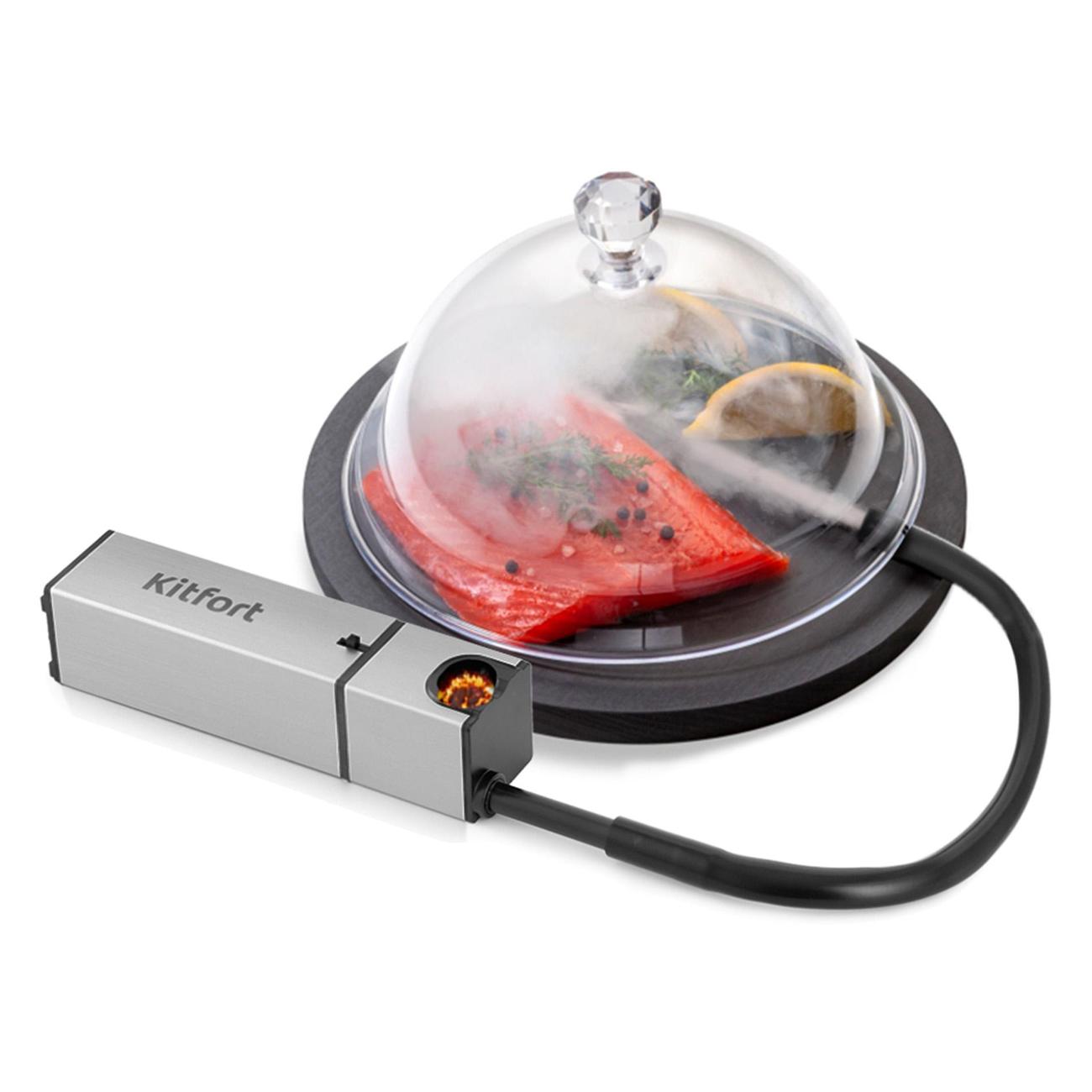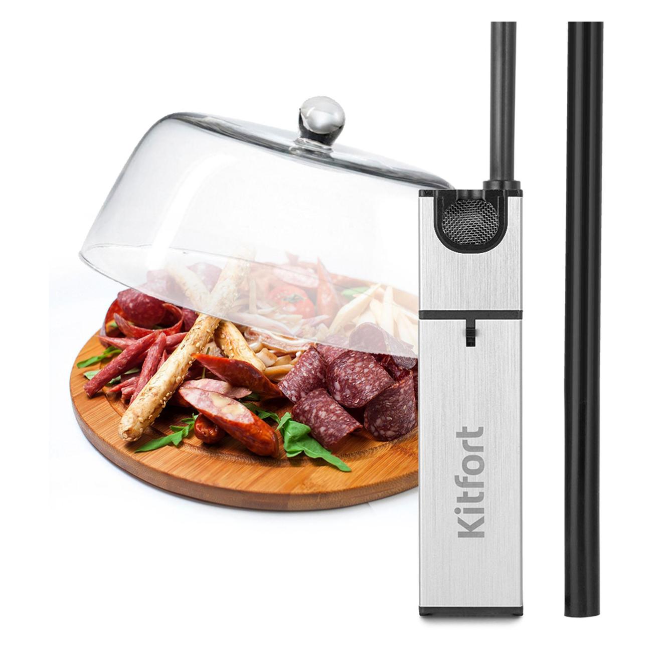Коптильный пистолет Kitfort КТ-2033 используется для обработки продуктов холодным дымом и придания им аромата блюд, приготовленных на костре. Мощность устройства составляет 0,6 Вт. Конструкция включает в себя дымогенератор, камеру сгорания и коптильную трубку. Модель оборудована механическим типом управления и приводится в действие при помощи кнопки на корпусе. Электропитание устройства осуществляется при помощи четырех батареек типа АА. Габаритные размеры модели — 42х3,9х3,7 см.