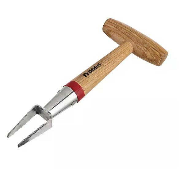 Удалитель сорняков DORN ручной. Инструмент для устранения небольших сорняков и корней с газонов и грядок.С его помощью можно безопасно убрать дикорастущие растения без применения химикатов.Прибор необходимо вдавить вертикально в землю, нажать на ручку в сторону противоположную корню.Устройство легко врезается в землю и вытягивает корень наружу.Рабочая часть изготовлена из нержавеющей стали и входит в землю на глубину до 6 см. Инструмент удобно лежит в руке и не скользит при работе, благодаря рукоятке из дерева. Материал рабочей части: Нержавеющая сталь; Материал рукоятки: Дерево; Длина (см): 27.5; Ширина (см): 11.5; Высота (см): 3.5; Бренд: ; Страна производства: Китай; Вес : 1.09
