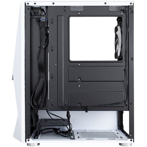Корпус для геймерского компьютера 1stPlayer DK-3-WH-3G6 изготовлен из белой стали, пластика и стекла. Внутри хватит места для материнской платы Micro-ATX, Mini-ITX либо Standard-ATX, видеокарты, длина которой не превышает 305 мм, и процессорного кулера высотой не более 150 мм.