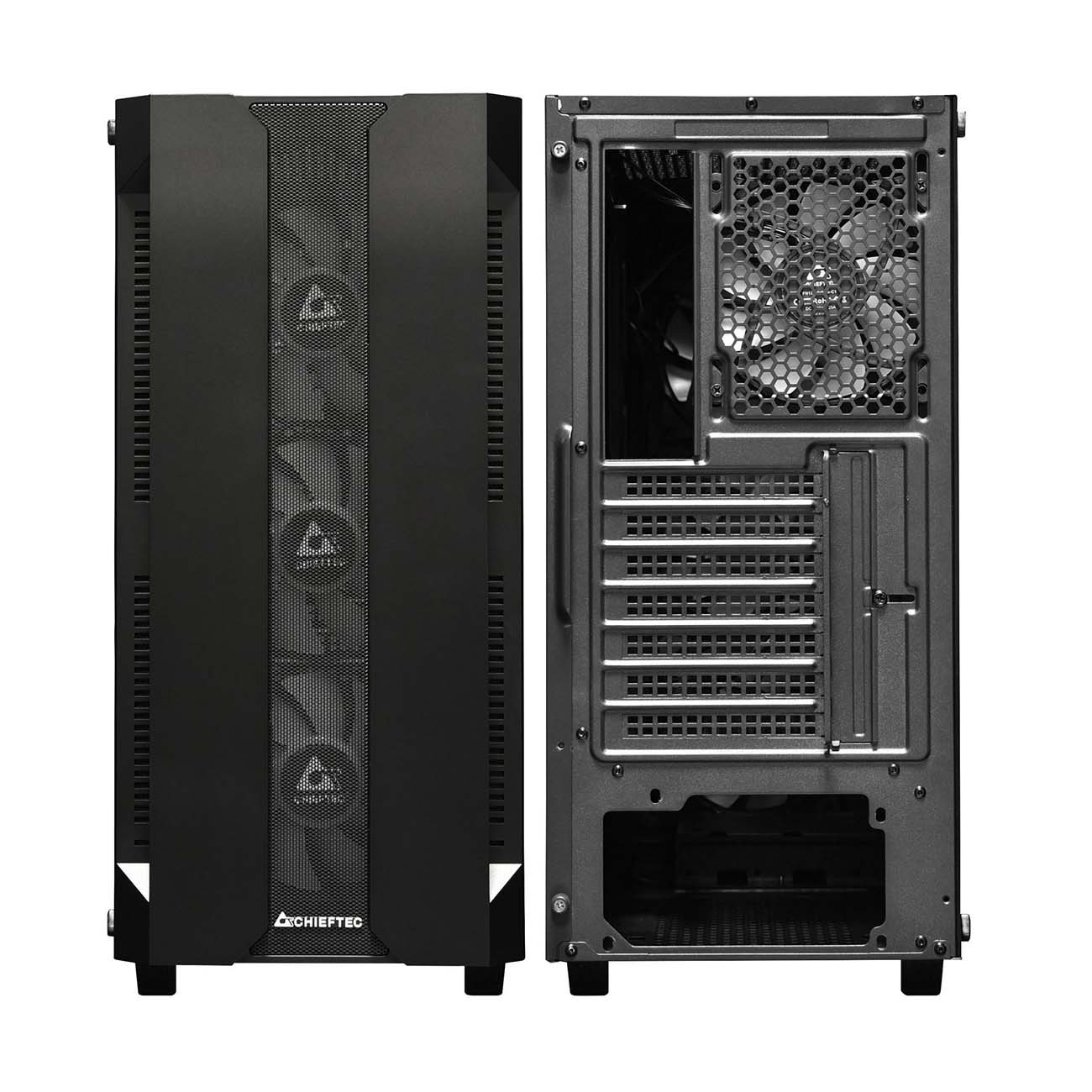 Корпус для компьютера Chieftec GS-01B-OP изготовлен из стали, гарантирующей устойчивость к повреждениям, оснащен четырьмя ножками. Модель совместима с материнскими картами формата АТХ, максимальная длина — 320 мм. Есть семь слотов для расширения, а также два разъема для наушников 3,5 мм. По периметру корпуса установлена светодиодная подсветка с широким спектром оттенков.