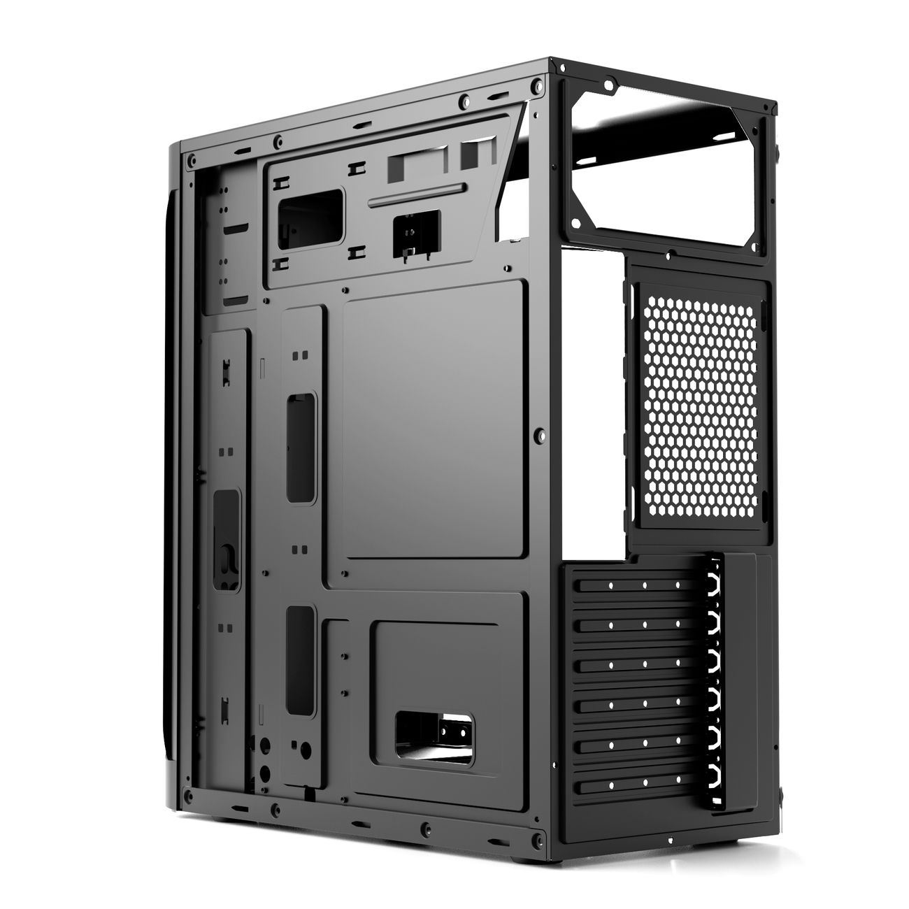 Для ATX платы не хватает одного болта(но это не проблема, так как вы не подлезите туда ни одной отверткой из-за крепления для HDD)