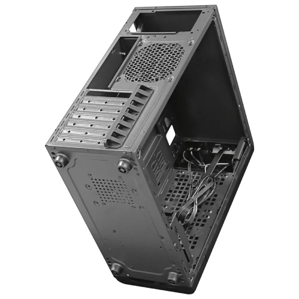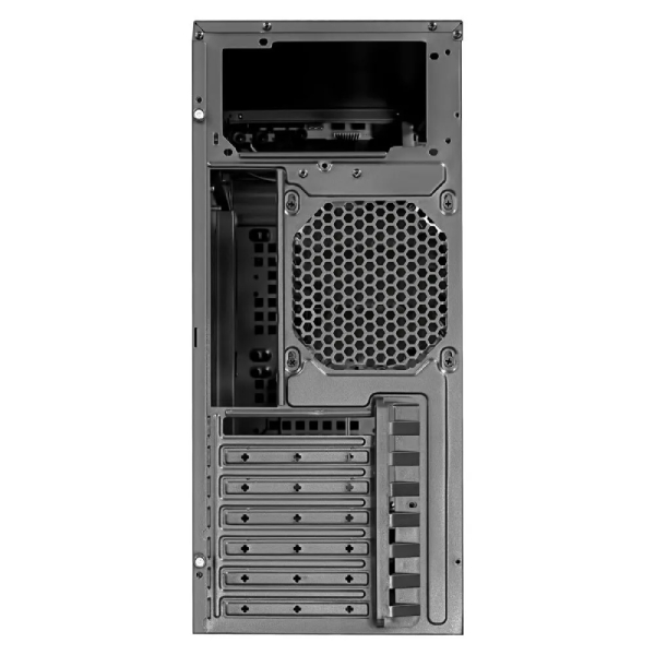 Ginzzu E220 — металлический компьютерный корпус для материнских плат формата mATX, mini-ITX и ATX. Модель рассчитана на подключение семи сменных носителей — есть четыре отсека формата 2,5 дюйма, три отсека 3,5 дюйма и один отсек под формат 5,25 дюйма. Для установки блока питания формата ATX используется отсек в верхней части корпуса. Модель поддерживает установку тыльного вентилятора диаметром 12 см — дополнительно в комплект поставки включены два фронтальных кулера диаметром 120 мм с синей LED-подсветкой. На лицевой панели расположено по одному порту USB 2.0 и USB 3.0, а также аудиовход-выход. Размер корпуса — 183 х 425 х 405 мм при весе 3,5 кг.