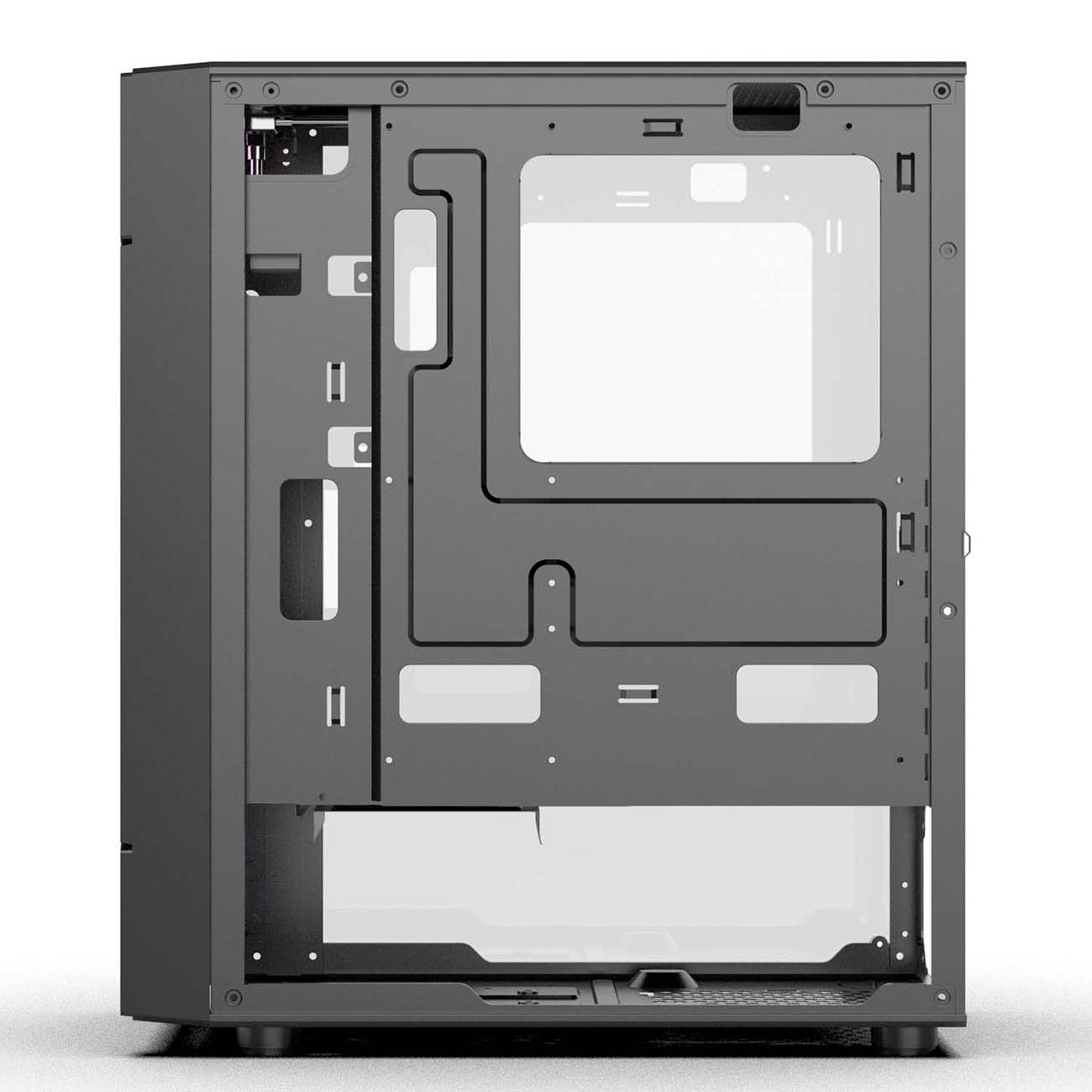 стандартные прямоугольные размеры и красивое цветовое исполнение, выглядит достойно, очень нравится надежность и прочность модели, так как в производстве модели каркаса используется сталь с солидной толщиной боковых стенок. на переднюю панель вынесли разъемы для микрофона и наушников, и в принципе все, что необходимо для самого базового использования и размещения в нем системного блока. под материнские платы тоже все предусмотрено, причем всех основных типов и параметров; панель, конечно, оснащена решеткой и эффективность охлаждения высокая и подсветка красиво его украшает и особенно в вечернее время. цвет не броский и смотрится лаконично однозначно доволен, вижу, что с покупкой не прогадал.