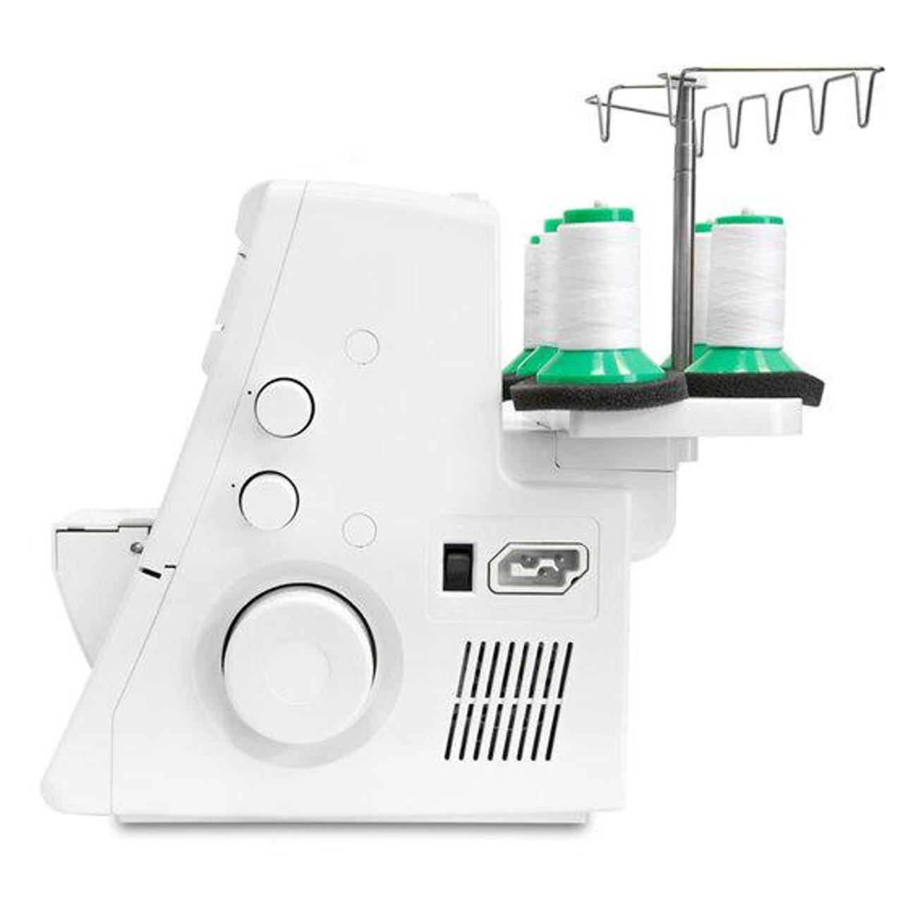 Коверлок выполняет до 20 видов швейных операций, включая распошивальные (три), выполнение оверлочных швов (узкий и широкий), плоских швов-имитации, цепных стежков, швов с укрепительной строчкой. Корпус модели оснащен устойчивыми ножками-опорами и пятью катушкодержателями. Высота подъема лапки — до 14 мм, ее прижим регулируется автоматически. Максимальная ширина стежков, выполняемых машиной, составляет 7 мм, ширина — 5 мм. Предусмотрена возможность плавной регулировки скорости шитья и длины стежка в пределах 0,5-4 мм.