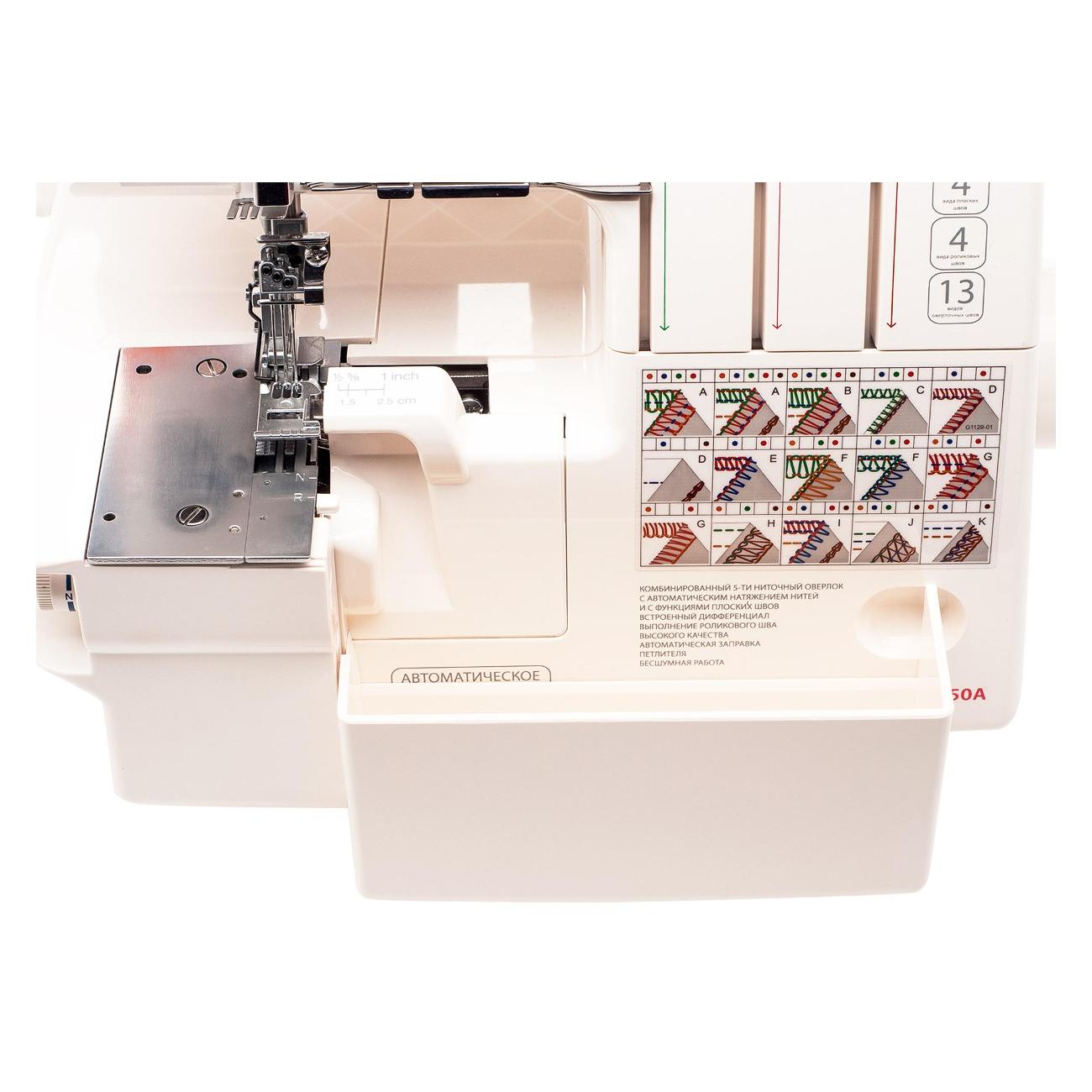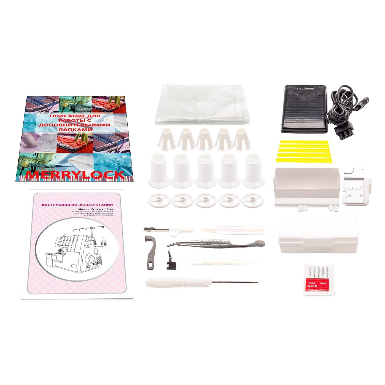 Коверлок Merrylock 5550A — модель в прочном пластиковом корпусе, оснащенная удобным и простым электромеханическим управлением. Используется механизм, который обеспечивает натяжение нитей в автоматическом режиме. Предусмотрена цветная маркировка заправки. Возможно шитье тяжелых тканей и сложенных в ряд слоев. Выполняется ролевый шов.