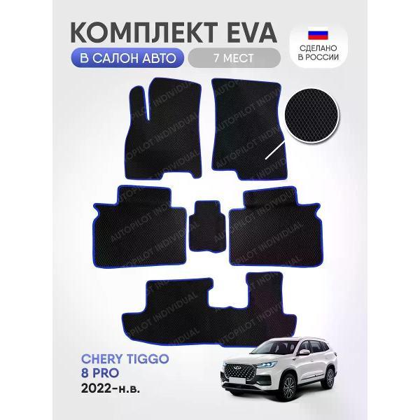 Коврик автомобильный AUTOPILOT INDIVIDUAL EVA black-blue-110-3 ряда_в салон Chery Tiggo 8 PRO 7 мест 2022-н.в.