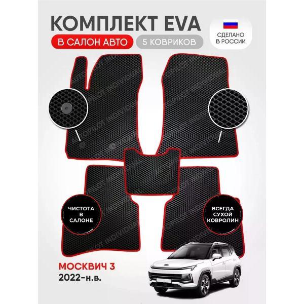Автомобильные коврики EVA подойдут для Москвич 3 2022-н.в. ЭВО коврики сделаны из качественного российского материала. Толщина материала 1 см. Каждый коврик изготовлен строго с учётом особенностей и размеров вашего пола. Это позволяет плотно закрыть и сохранить ковролин вашего авто. У evo есть специальные ячейки, которые удерживают мусор, грязь и воду в любое время года, особенно в зимний период. Также из-за ячеистой структуры автоковриков, вода, пыль, грязь, оседает внутри ячейки, поэтому ваша обувь будет всегда чистой и сухой. Ева коврики в машину снабжены липучкой, из-за чего надежно зафиксированы на полу салона вашего авто. Эва - отличная замена для тяжелых резиновых ковриков. Вытаскиваются легко и очищаются несколькими ударами по обратной стороне. Наши полики очень легкие и прочные. При температуре -50° до +50° эва остается такой же эластичный. В комплект входит 2 передних, 2 задних автоковрика и перемычка. В ассортименте имеются ковры с разной цветовой окантовкой. У нас всегда своевременная доставка. Автоаксессуары и автотовары - хороший подарок на Новый год, день рождения, 23 февраля! Набор ковриков для салона автомобиля, 5 штук в комплекте!