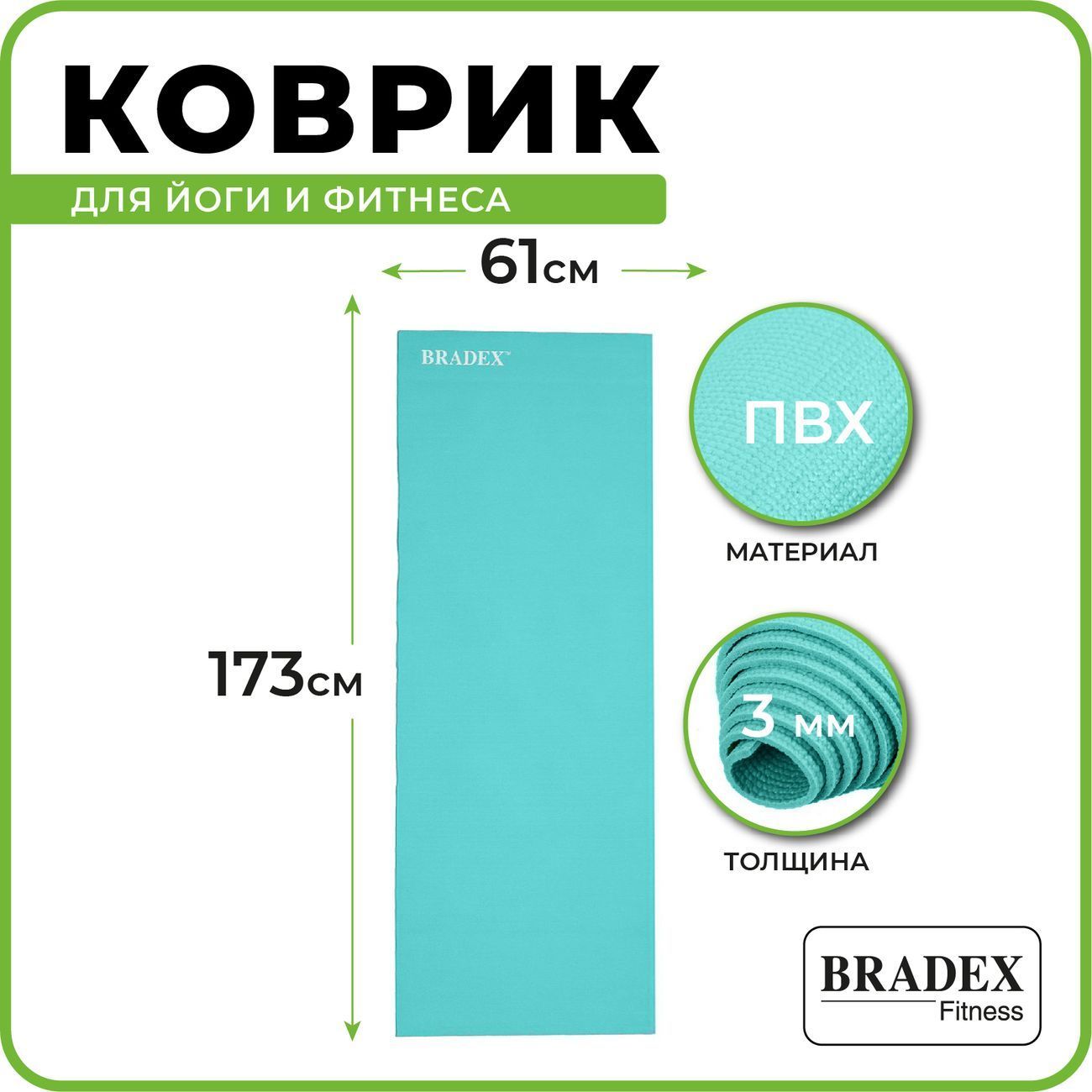 Вы можете купить Коврик для йоги и фитнеса Bradex SF 0400 (173*61*0.3см) бирюзовый в магазинах М.Видео по доступной цене. Коврик для йоги и фитнеса Bradex SF 0400 (173*61*0.3см) бирюзовый: подробное описание, фото и отзывы реальных покупателей, характеристики, возможность скачать инструкции и подобрать аксессуары.