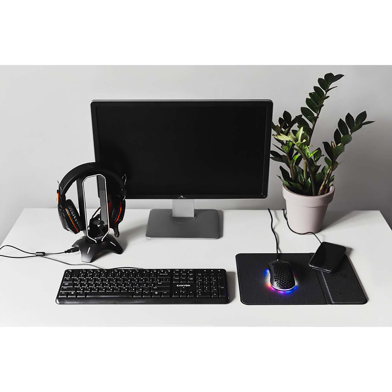 Коврик для мыши Canyon CNS-CMPW5 прямоугольной формы оборудован модулем для беспроводной зарядки совместимых смартфонов, планшетов, часов и других устройств. При перегреве, возникновении короткого замыкания и перенапряжения срабатывает автоматическое отключение.