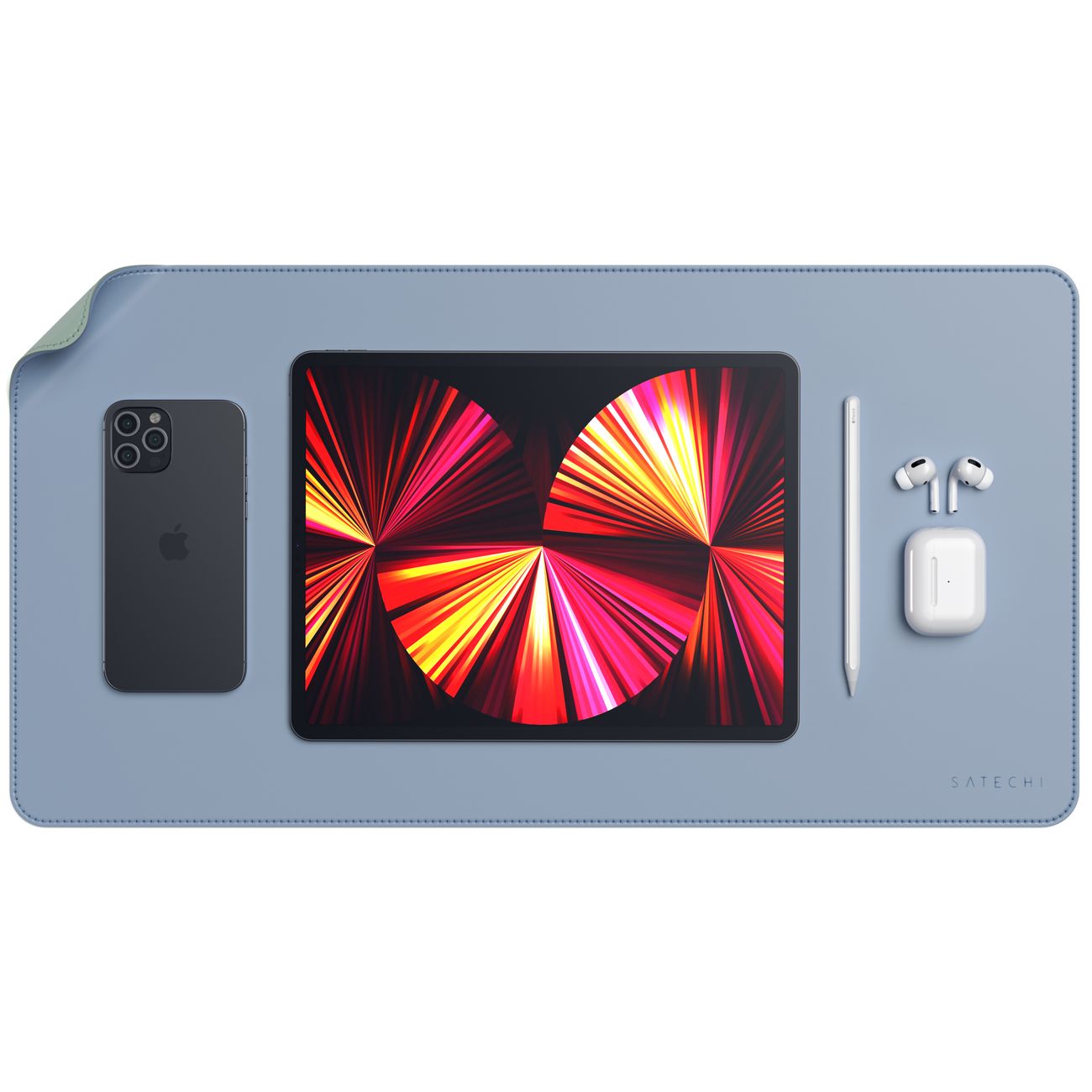 Двухсторонний коврик Satechi Dual Side Eco-Leather Deskmate выполнен из прочной и практичной экокожи. Этот материал обеспечивает отличное сцепление с поверхностью стола, не скользит по ней и надёжно защищает её от случайных повреждений или загрязнений.