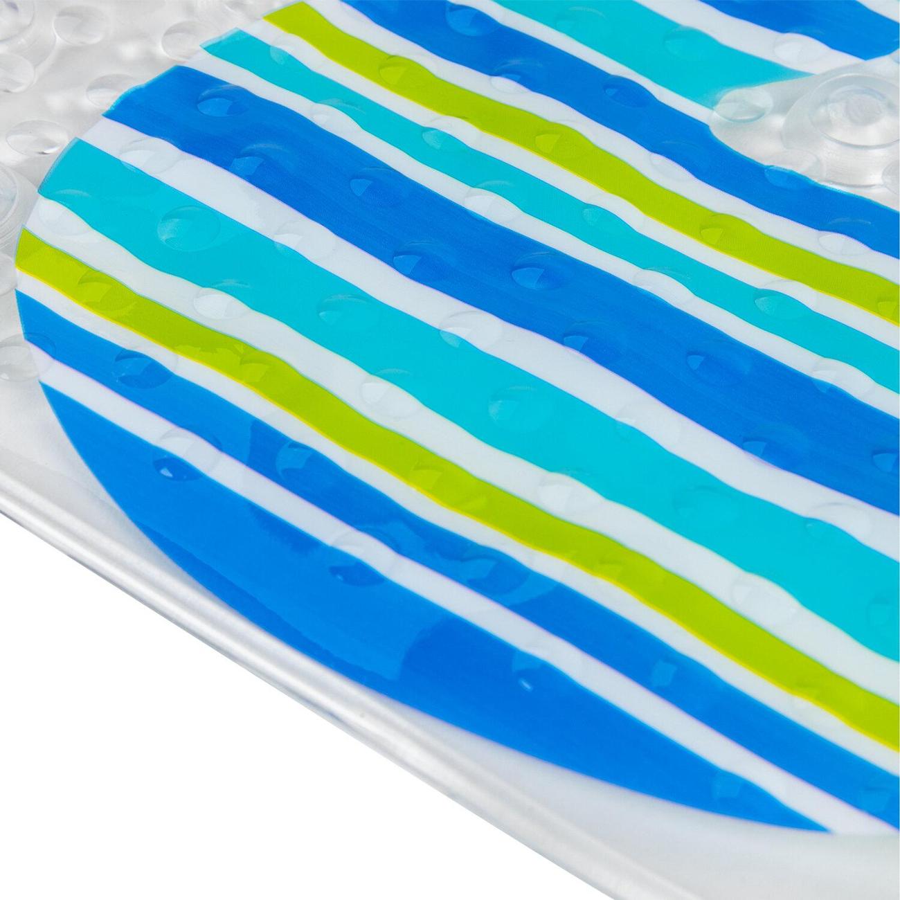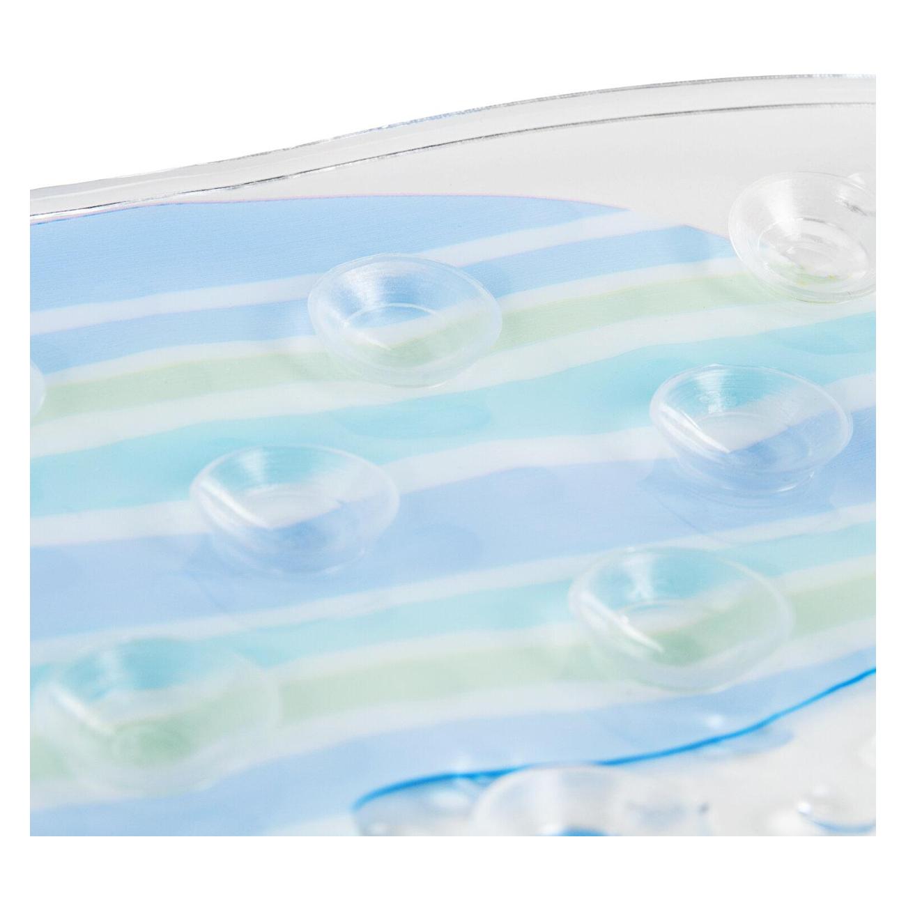 Коврик обладает рельефной поверхностью для мягкого массажного эффекта стоп. Сделан из пвх, что обеспечивает противоскользящую поверхность и защиту от падений и травм. Для улучшения фиксации рекомендуется сначала намочить ванну водой, затем разместить коврик и прижать его ко дну.