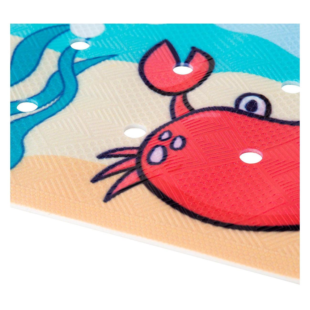 Этот яркий и привлекательный коврик с милым детским рисунком не только украсит ванную комнату, но и создаст безопасное пространство для водных процедур. Специальная текстура коврика предотвращает скольжение. Удобные присоски на дне коврика обеспечивают крепкое сцепление с поверхностью ванны, гарантируя, что коврик останется на месте даже во время активных игр.