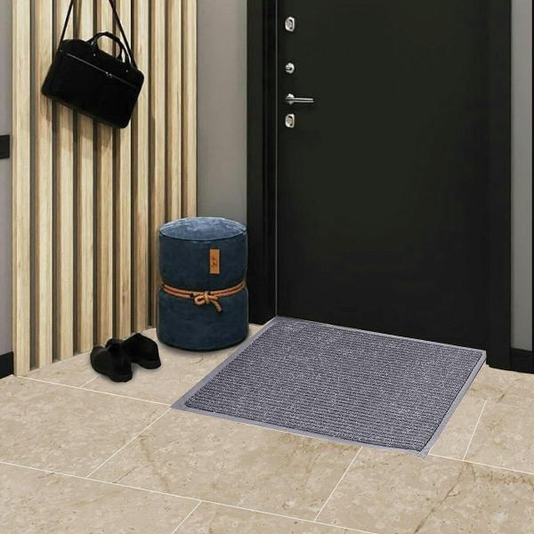 Нескользящая основа не дает влаге проникнуть на пол, предотвращает скольжение и возможные травмы при падении. Ворсовое покрытие с ребристой текстурой удерживает влагу и грязь. Размер – 60х90 см. Толщина – 7 мм. Ворс изготовлен из 100% полиэстера. Коврик выполнен в сером цвете.