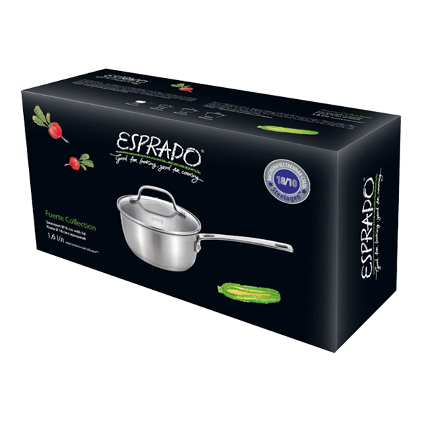 Ковш Esprado FRT16SE109 объемом 1,6 л выполнен из нержавеющей стали. Это прочный, устойчивый к механическим воздействиям и гигиеничный материал, не влияющий на вкус и аромат пищи и легко поддающийся очистке. Дно толщиной 3,6 мм обеспечивает равномерное распределение тепла и предотвращает пригорание продуктов. Крышка сделана из жаропрочного стекла и снабжена стальным ободком, благодаря которому плотно прилегает к стенкам. В ковше можно готовить на варочных панелях любых типов.