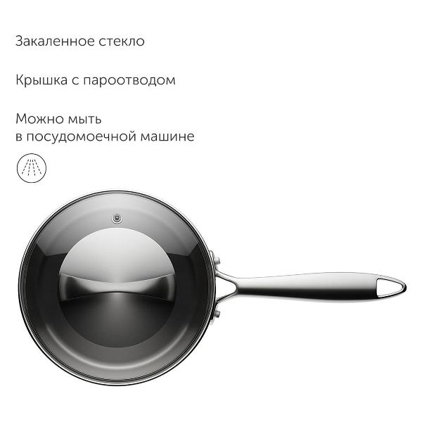 Благодаря трехслойному капсульному дну ковш быстро, равномерно нагревается. После окончания процесса готовки медленно остывает, сохраняя температуру готовых продуктов.