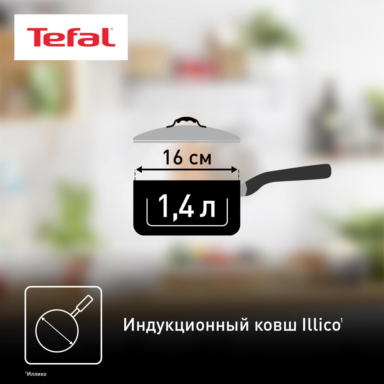 Ковш с крышкой Tefal Illico, 1,4 л G7452274 — практичное решение для повседневного приготовления пищи.