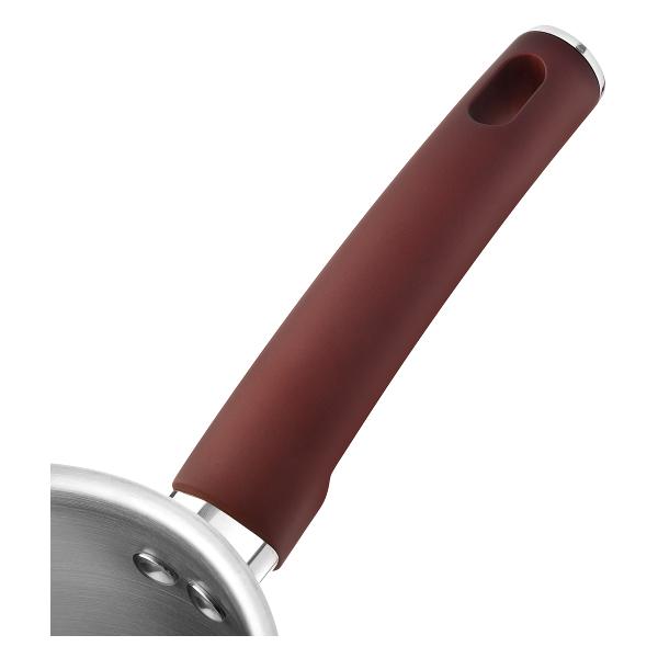 Ковш Vensal VS1543 размерами 18х10х10 см, с толщиной стенок 0,6 мм может устанавливаться на плитах всех видов. Металлический корпус устойчив к падениям с высоты, ударам, механическим нагрузкам. Силиконовые накладки на ручке предотвращают получение ожога при готовке.