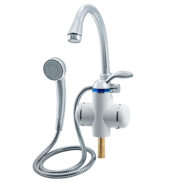 Unipump BEF-001-03 — пластиковый водонагреватель проточного типа с максимальной температурой нагрева воды до 60℃. Мощность устройства — 3 кВт. Максимальное давление в магистрали при подаче холодной воды — 0,04 МПа, а горячей 0,5 МПа. Размер водонагревателя — 250 х 120 х 310 мм. В комплект поставки входит душевая лейка.