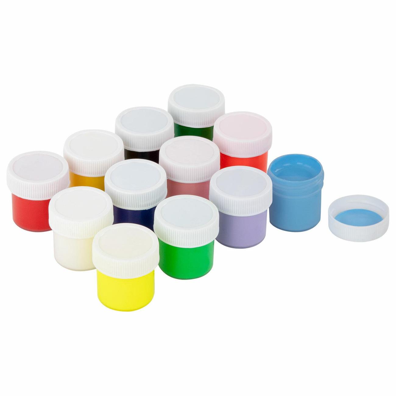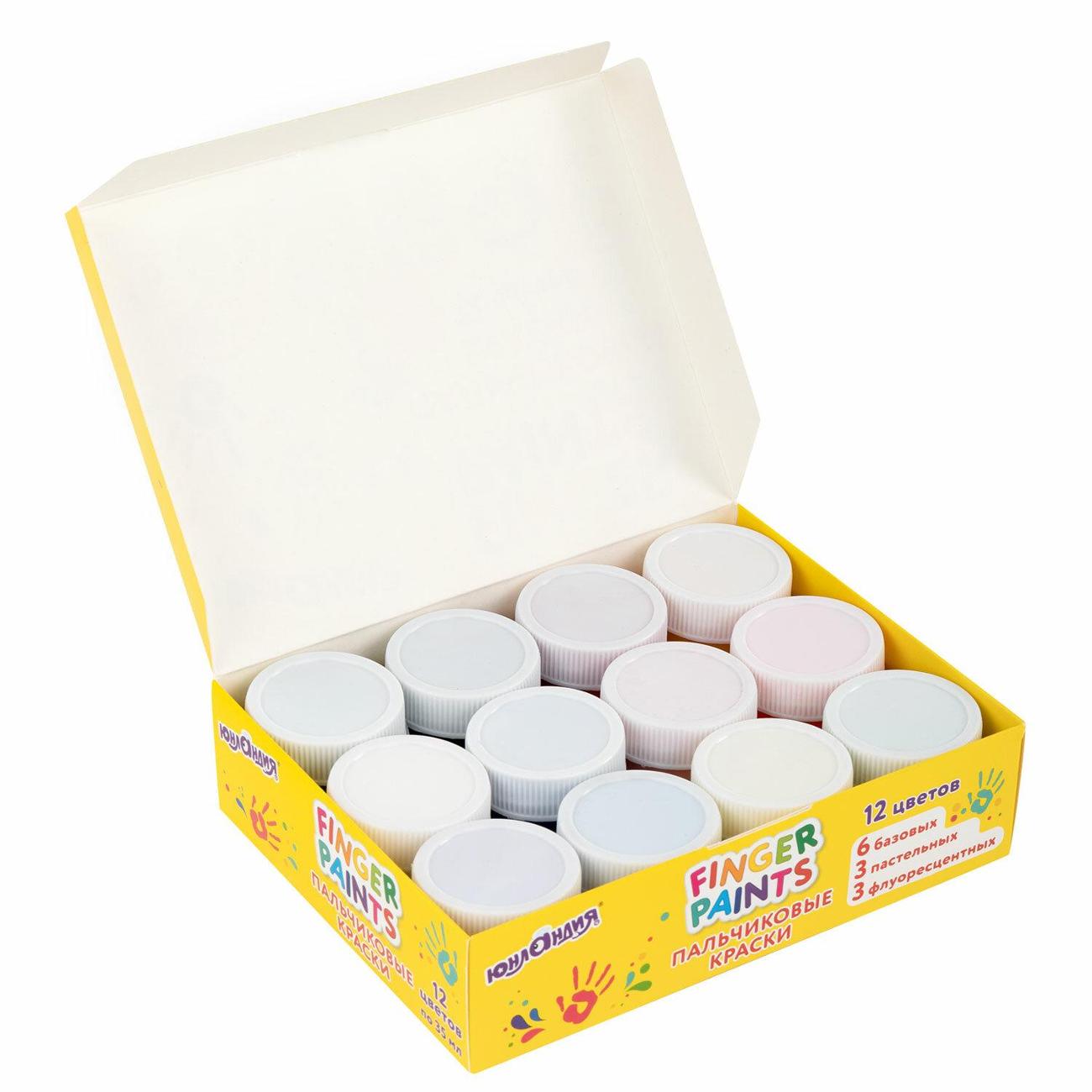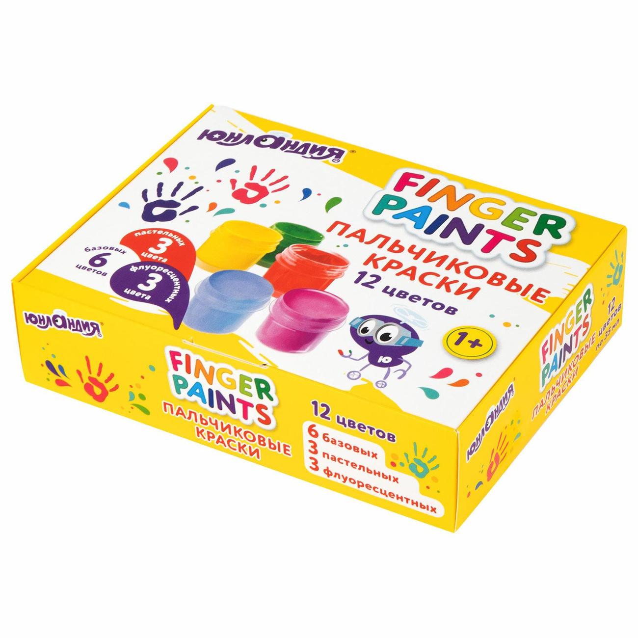 В наборе 12 ярких цвета: 6 базовых, 3 пастельных и 3 флуоресцентных. Краски выполнены на основе натуральных компонентов, не токсичны. Благодаря приятной муссовой текстуре краски не растекаются по ручкам малыша и при этом позволяют ему делать яркие рисунки.