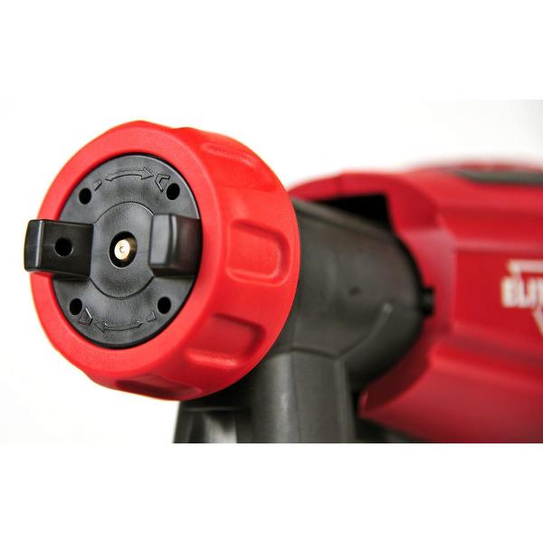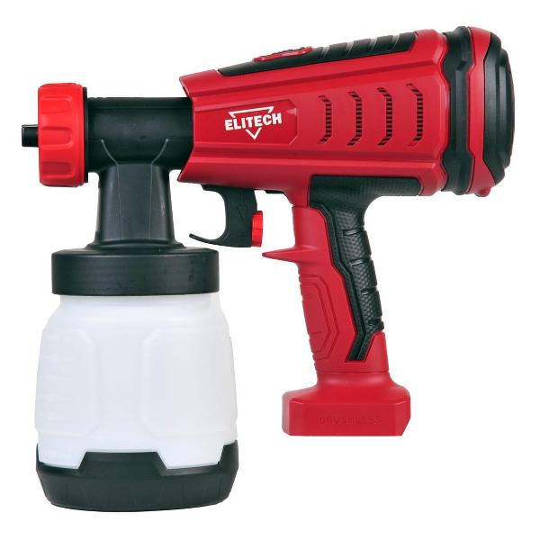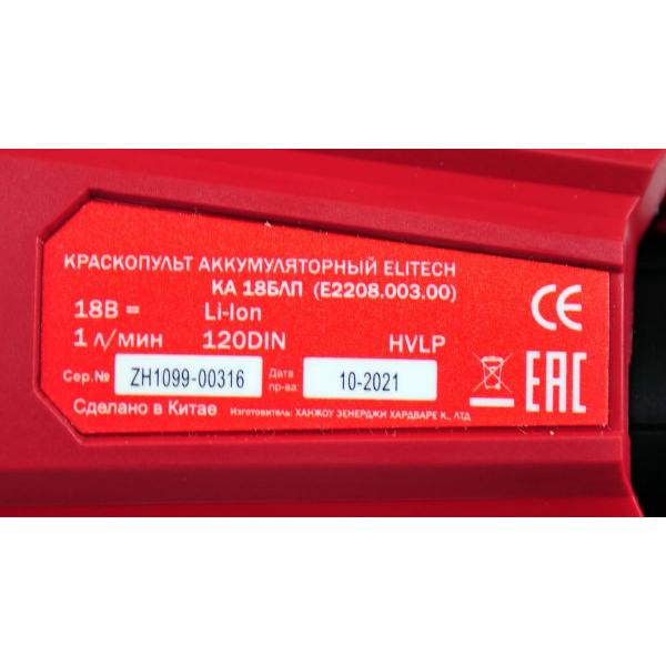 Краскопульт Elitech КА 18БЛП (E2208.003.00) применяется для распыления эмалевой краски, грунтовки, морилки, лака, антисептика и других веществ вязкостью до 60 Din. Модель оснащена соплом 2,6 мм и бачком 0,8 л, располагающимся в нижней части. Производительность достигает 1 л/ч, максимальная ширина распыления — 100 мм. В качестве источника питания используется съемный аккумулятор. Размеры — 25х11,2х28 см.