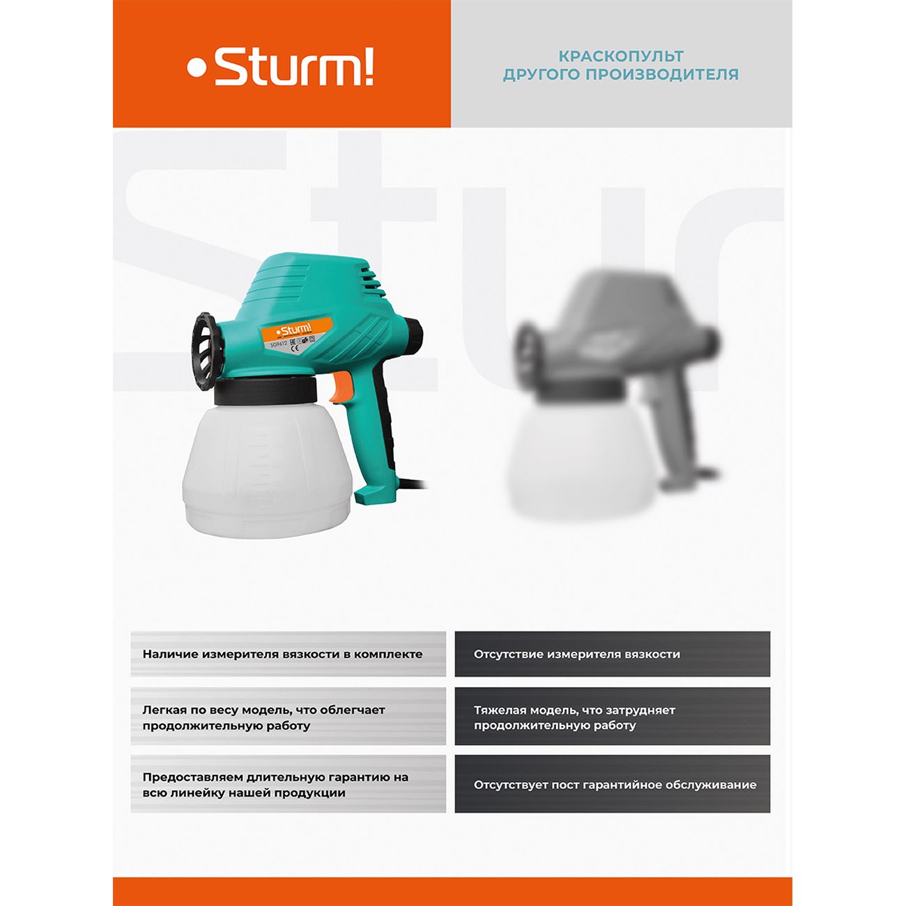 Вы можете купить Краскопульт Sturm! SG9612 в магазинах М.Видео по доступной цене. Краскопульт Sturm! SG9612: подробное описание, фото и отзывы реальных покупателей, характеристики, возможность скачать инструкции и подобрать аксессуары.