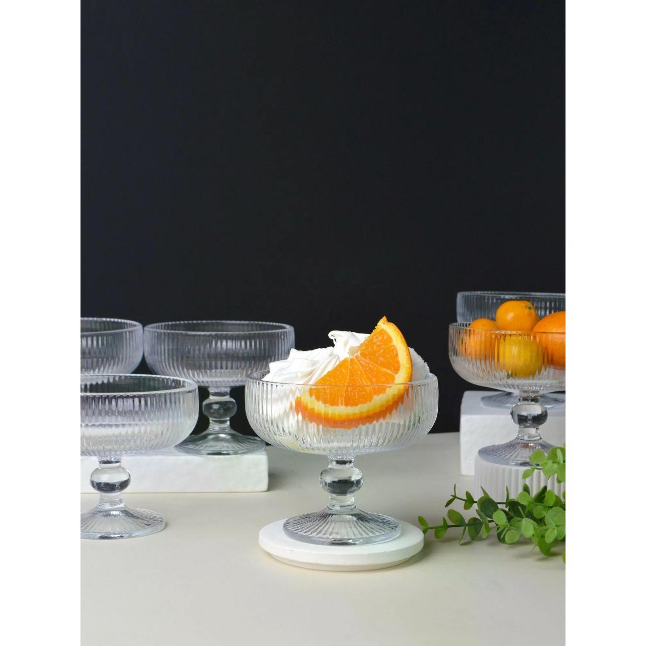Набор креманок, который станет идеальным дополнением для любого стола. Этот комплект включает в себя 6 элегантных креманок. Такие креманки прекрасно подойдут как для подачи десертов, так и для салатов, добавляя изысканность и стиль в любое мероприятие. Изготовленные из качественного стекла, креманки обеспечивают надежность и долговечность. Их прозрачный материал позволяет продемонстрировать великолепие подаваемых блюд, будь то воздушное мороженое, яркие фрукты или изысканные легкие салаты. Размер каждой креманки идеально подходит для порционного сервирования, что делает их универсальными помощниками на кухне.Этот набор станет отличным выбором как для повседневного использования, так и для торжественных случаев. Стаканчики легко комбинируются с другими предметами столовой посуды, что позволит создать гармоничное оформление стола. Подайте десерты или напитки в стильном стекле.Кроме того, набор — это прекрасный подарок для любителей готовить и радовать себя и своих близких. Они подходят для использования в посудомоечной машине, что делает уход за ними простым и удобным.