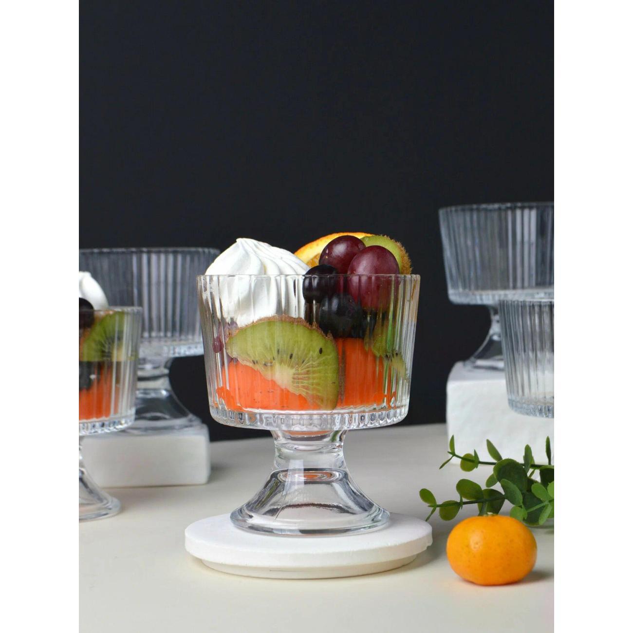 Набор креманок, который станет идеальным дополнением для любого стола. Этот комплект включает в себя 6 элегантных креманок. Такие креманки прекрасно подойдут как для подачи десертов, так и для салатов, добавляя изысканность и стиль в любое мероприятие. Изготовленные из качественного стекла, креманки обеспечивают надежность и долговечность. Их прозрачный материал позволяет продемонстрировать великолепие подаваемых блюд, будь то воздушное мороженое, яркие фрукты или изысканные легкие салаты. Размер каждой креманки идеально подходит для порционного сервирования, что делает их универсальными помощниками на кухне.Этот набор станет отличным выбором как для повседневного использования, так и для торжественных случаев. Стаканчики легко комбинируются с другими предметами столовой посуды, что позволит создать гармоничное оформление стола. Подайте десерты или напитки в стильном стекле.Кроме того, набор — это прекрасный подарок для любителей готовить и радовать себя и своих близких. Они подходят для использования в посудомоечной машине, что делает уход за ними простым и удобным.