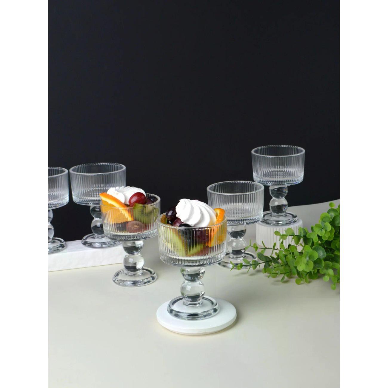 Набор креманок, который станет идеальным дополнением для любого стола. Этот комплект включает в себя 6 элегантных креманок. Такие креманки прекрасно подойдут как для подачи десертов, так и для салатов, добавляя изысканность и стиль в любое мероприятие. Изготовленные из качественного стекла, креманки обеспечивают надежность и долговечность. Их прозрачный материал позволяет продемонстрировать великолепие подаваемых блюд, будь то воздушное мороженое, яркие фрукты или изысканные легкие салаты. Размер каждой креманки идеально подходит для порционного сервирования, что делает их универсальными помощниками на кухне.Этот набор станет отличным выбором как для повседневного использования, так и для торжественных случаев. Стаканчики легко комбинируются с другими предметами столовой посуды, что позволит создать гармоничное оформление стола. Подайте десерты или напитки в стильном стекле.Кроме того, набор — это прекрасный подарок для любителей готовить и радовать себя и своих близких. Они подходят для использования в посудомоечной машине, что делает уход за ними простым и удобным.