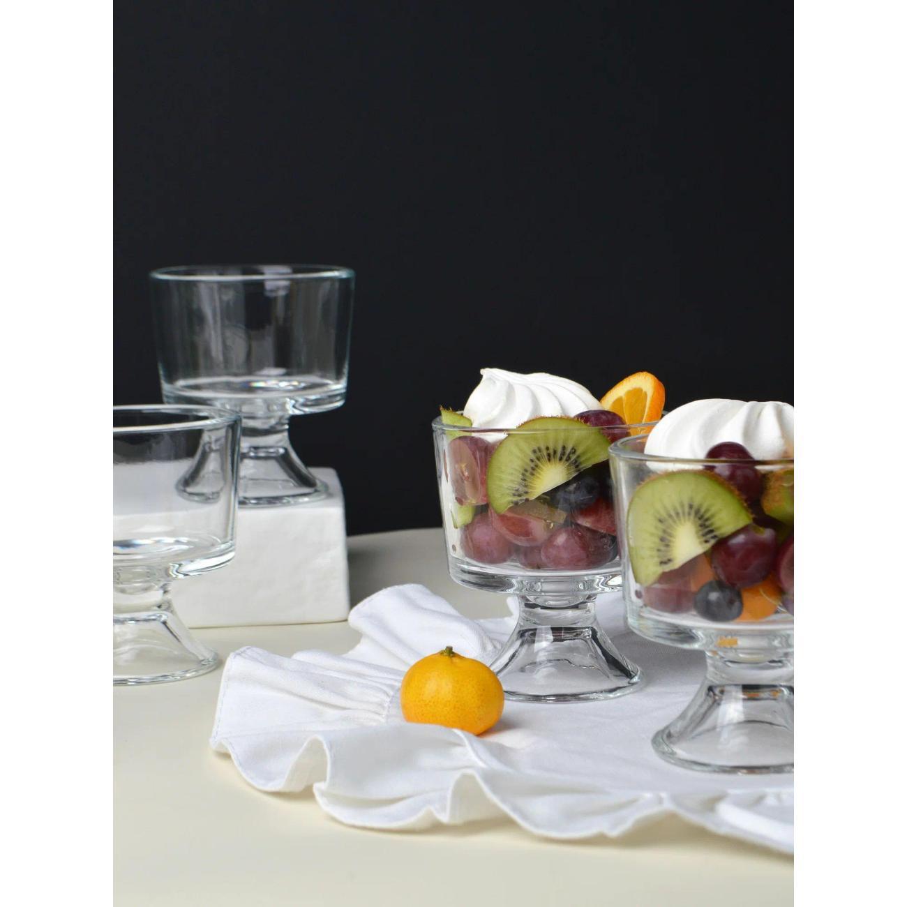 Набор креманок, который станет идеальным дополнением для любого стола. Этот комплект включает в себя 6 элегантных креманок. Такие креманки прекрасно подойдут как для подачи десертов, так и для салатов, добавляя изысканность и стиль в любое мероприятие. Изготовленные из качественного стекла, креманки обеспечивают надежность и долговечность. Их прозрачный материал позволяет продемонстрировать великолепие подаваемых блюд, будь то воздушное мороженое, яркие фрукты или изысканные легкие салаты. Размер каждой креманки идеально подходит для порционного сервирования, что делает их универсальными помощниками на кухне.Этот набор станет отличным выбором как для повседневного использования, так и для торжественных случаев. Стаканчики легко комбинируются с другими предметами столовой посуды, что позволит создать гармоничное оформление стола. Подайте десерты или напитки в стильном стекле.Кроме того, набор — это прекрасный подарок для любителей готовить и радовать себя и своих близких. Они подходят для использования в посудомоечной машине, что делает уход за ними простым и удобным.