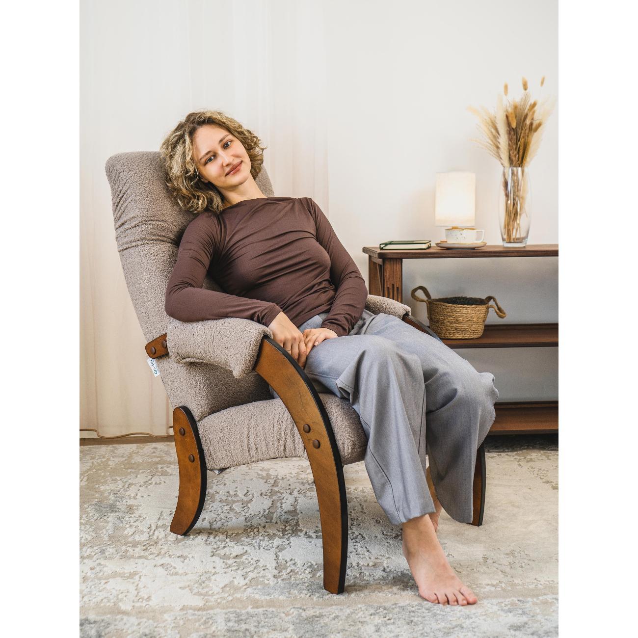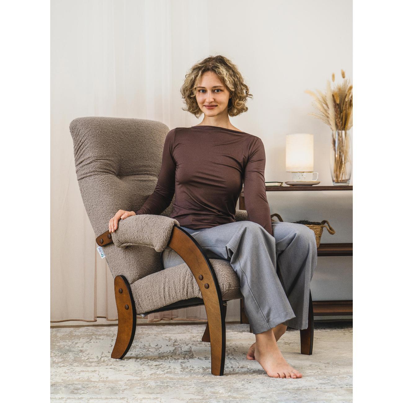 Кресло для дома модель 61 от российской фабрики мебели Глайдер станет любимой вещью в доме. В каждой квартире должно быть удобное кресло в гостиную. Оно не только удачно дополняет интерьер, но и создает уют. Изделие можно использовать как кресло для отдыха на кухне, пока готовятся ваши блюда. Благодаря оптимальным габаритам вы сможете поместить кресло на балкон и любоваться прекрасным видом из окна. Кресло для отдыха мягкое, имеет эргономичную спинку с комфортным углом наклона. Благодаря этому вы сможете принять удобное положение и сохранить правильную осанку. Кресло для гостиной идеально подойдет пожилым людям, а также для детей в детскую комнату. Кресло интерьерное имеет каркас, выполненный из фанеры натуральной березы, а крепления держатся на винтах. Спинка и сидение кресла для отдыха мягкие, наполнены дышащим наполнителем. Какая бы ни была обивка кресла, материал не выгорит на солнце и не начнет скатываться, устойчив к истиранию и выгоранию, легок в уходе. Краски и лаки, которыми покрыто деревянное кресло, сертифицированы и гипоаллергенны. Кресло для отдыха дома отлично подойдет для каминной зоны. У компании Glider вы найдете идеальную мебель. Кресло мягкое в гостиную подойдет для подарка. Кресло лофт со спинкой для взрослых используют мамы для кормления ребенка, а папы — удобно для отдыха с книгой. Кресло для отдыха велюр можно использовать как офисное кресло или кресло руководителя.