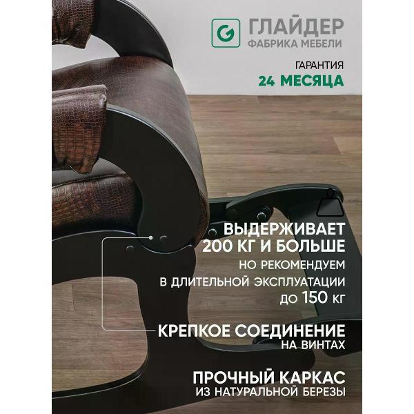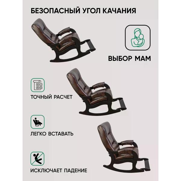 Стильное и функциональное кресло-качалка для взрослых Аоста от российской фабрики мебели Глайдер станет идеальным выбором для дома и дачи. Мягкая мебель, созданная для комфорта, гармонично впишется в интерьер любой комнаты вашей квартиры — гостиной, спальни, кухни или даже балкона. Оно идеально подходит для кормления малыша, чтения книг или уютного вечера с чашкой чая. Дизайнерское исполнение органично сочетается с элементами классики и современных тенденций оформления пространства. Особенности модели: откидывающаяся подножка позволяет расслабить ноги, не мешает при раскачивании; анатомическая спинка, которая обеспечивает комфортное положение спины во время отдыха; безопасный угол качания. Прочный деревянный каркас выполнен из высококачественной березовой фанеры, благодаря такому каркасу и крепкому соединению на винтах, это кресло прослужит вам долгие годы, сохраняя свой первозданный вид. Корпус покрыт эмалью на водной основе, покрытие абсолютно безопасно и безвредно для человека, не имеет запаха, сертифицировано и гипоаллергенно. Ткань обладают высокой износостойкостью, проста в уходе. Чехлы несъемные. Подходит для создания релакс-зоны дома, лоджии или на террасе загородного коттеджа. Такое домашнее кресло станет незаменимой частью интерьера для тех, кто ценит уют и практичность. Кресло поставляется в разобранном виде с подробной инструкцией по сборке, со всей необходимой фурнитурой.