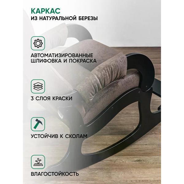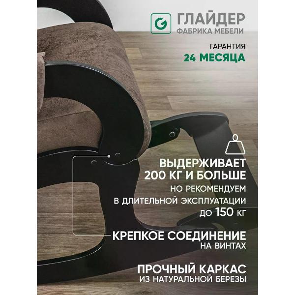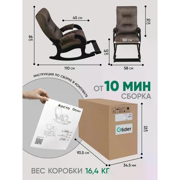 Стильное и функциональное кресло-качалка для взрослых Аоста от российской фабрики мебели Глайдер станет идеальным выбором для дома и дачи. Мягкая мебель, созданная для комфорта, гармонично впишется в интерьер любой комнаты вашей квартиры — гостиной, спальни, кухни или даже балкона. Оно идеально подходит для кормления малыша, чтения книг или уютного вечера с чашкой чая. Дизайнерское исполнение органично сочетается с элементами классики и современных тенденций оформления пространства. Особенности модели: откидывающаяся подножка позволяет расслабить ноги, не мешает при раскачивании; анатомическая спинка, которая обеспечивает комфортное положение спины во время отдыха; безопасный угол качания. Прочный деревянный каркас выполнен из высококачественной березовой фанеры, благодаря такому каркасу и крепкому соединению на винтах, это кресло прослужит вам долгие годы, сохраняя свой первозданный вид. Корпус покрыт эмалью на водной основе, покрытие абсолютно безопасно и безвредно для человека, не имеет запаха, сертифицировано и гипоаллергенно. Ткань обладают высокой износостойкостью, проста в уходе. Чехлы несъемные. Подходит для создания релакс-зоны дома, лоджии или на террасе загородного коттеджа. Такое домашнее кресло станет незаменимой частью интерьера для тех, кто ценит уют и практичность. Кресло поставляется в разобранном виде с подробной инструкцией по сборке, со всей необходимой фурнитурой.