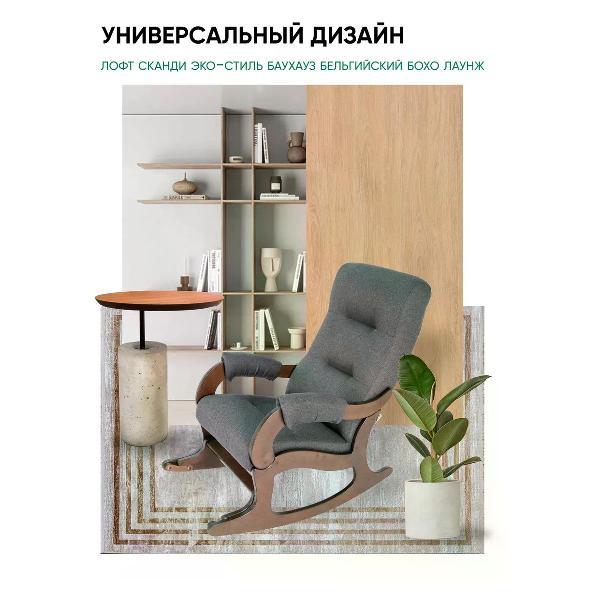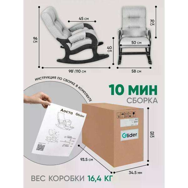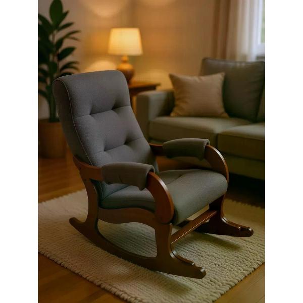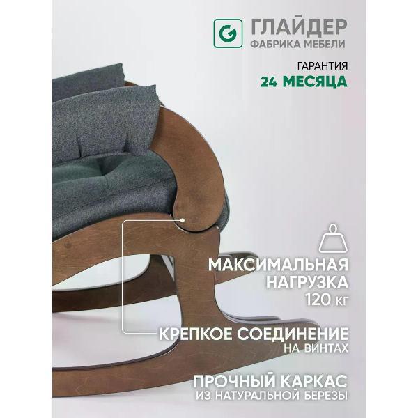 Стильное и функциональное кресло-качалка для взрослых Аоста от российской фабрики мебели Глайдер станет идеальным выбором для дома и дачи. Мягкая мебель, созданная для комфорта, гармонично впишется в интерьер любой комнаты вашей квартиры — гостиной, спальни, кухни или даже балкона. Оно идеально подходит для кормления малыша, чтения книг или уютного вечера с чашкой чая. Дизайнерское исполнение органично сочетается с элементами классики и современных тенденций оформления пространства. Особенности модели: откидывающаяся подножка позволяет расслабить ноги, не мешает при раскачивании; анатомическая спинка, которая обеспечивает комфортное положение спины во время отдыха; безопасный угол качания. Прочный деревянный каркас выполнен из высококачественной березовой фанеры, благодаря такому каркасу и крепкому соединению на винтах, это кресло прослужит вам долгие годы, сохраняя свой первозданный вид. Корпус покрыт эмалью на водной основе, покрытие абсолютно безопасно и безвредно для человека, не имеет запаха, сертифицировано и гипоаллергенно. Ткань обладают высокой износостойкостью, проста в уходе. Чехлы несъемные. Подходит для создания релакс-зоны дома, лоджии или на террасе загородного коттеджа. Такое домашнее кресло станет незаменимой частью интерьера для тех, кто ценит уют и практичность. Кресло поставляется в разобранном виде с подробной инструкцией по сборке, со всей необходимой фурнитурой.