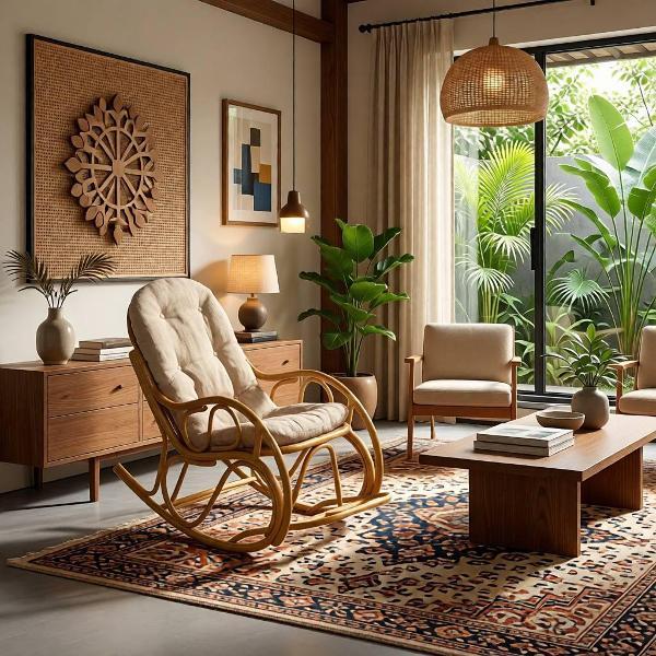 Кресло-качалка произведено в Индонезии, стране, известной своими качественными и надежными изделиями из натурального ротанга.