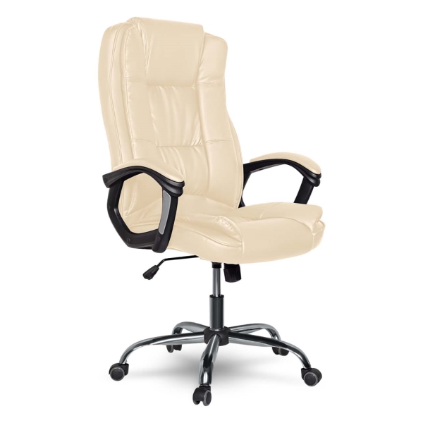 Спинка и сиденье обиты экокожей. Крестовина сделана из металла. Каркас комбинированный. Для его изготовления используются дерево и металл. Габаритные размеры кресла: глубина — 75 см, ширина — 67 см, высота — 117 см. Вес модели составляет 18 кг.