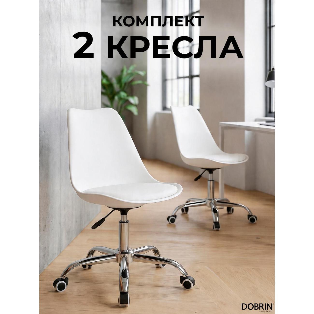 Набор 2 шт Офисное кресло для персонала DOBRIN MICKEY (белый). Материал обивки искусственная кожа. Материал каркаса полипропилен. Материал основания металл. Размеры: высота 91,5(81) см, ширина 67 см, глубина 67 см, ширина и длина основания 67 см. Размеры сиденья: высота сиденья 54(42) см, ширина сиденья 44 см, глубина сиденья 42 см, толщина сиденья 4 см, высота спинки 41 см. Офисное кресло на пятилучье. Форма сиденья фигурная, сиденье мягкое. Офисное кресло с регулировкой высоты. Товар изготовлен по уникальному дизайну и эскизу DOBRIN с любовью к мебели. Максимальная нагрузка на офисное кресло 100 кг. Гарантийный срок 12 месяцев, минимальный срок службы от 5 лет. Комфорт, прочность и эргономичность данного кресла отлично подойдут для персонала компании, которые постоянно работают в офисе.