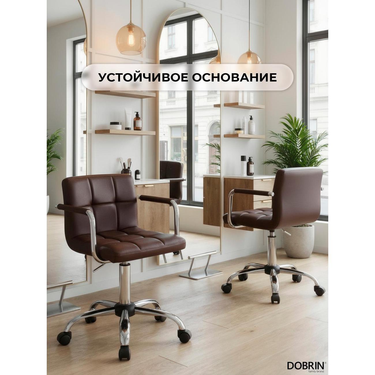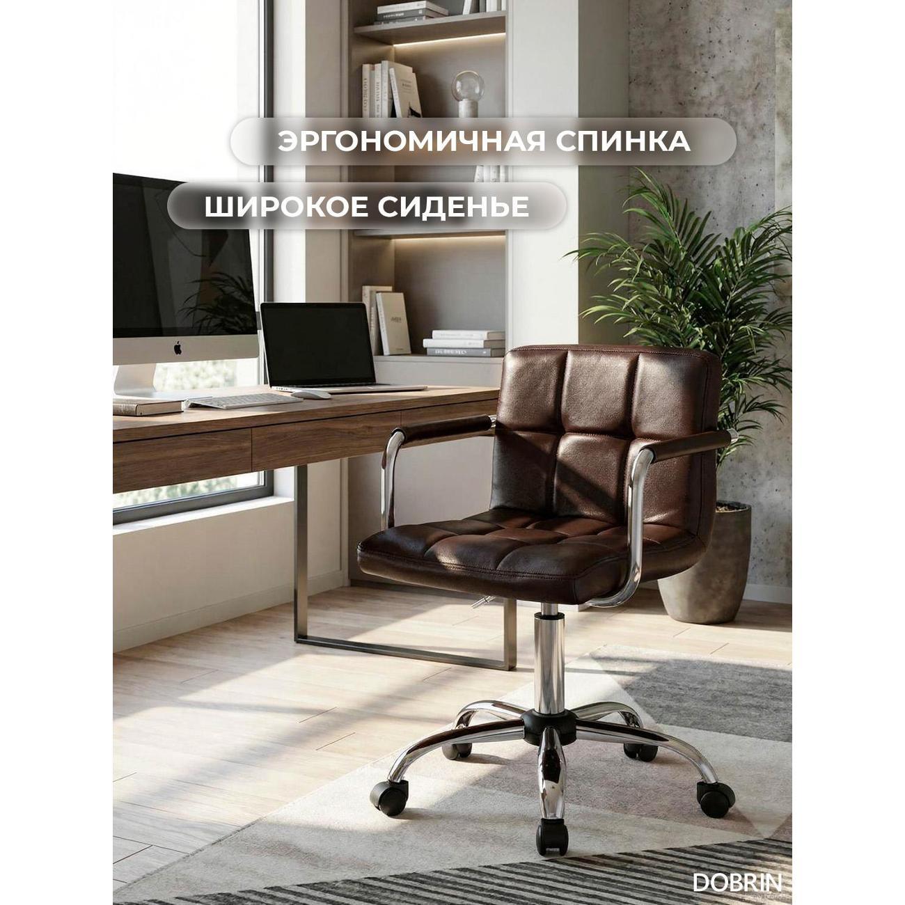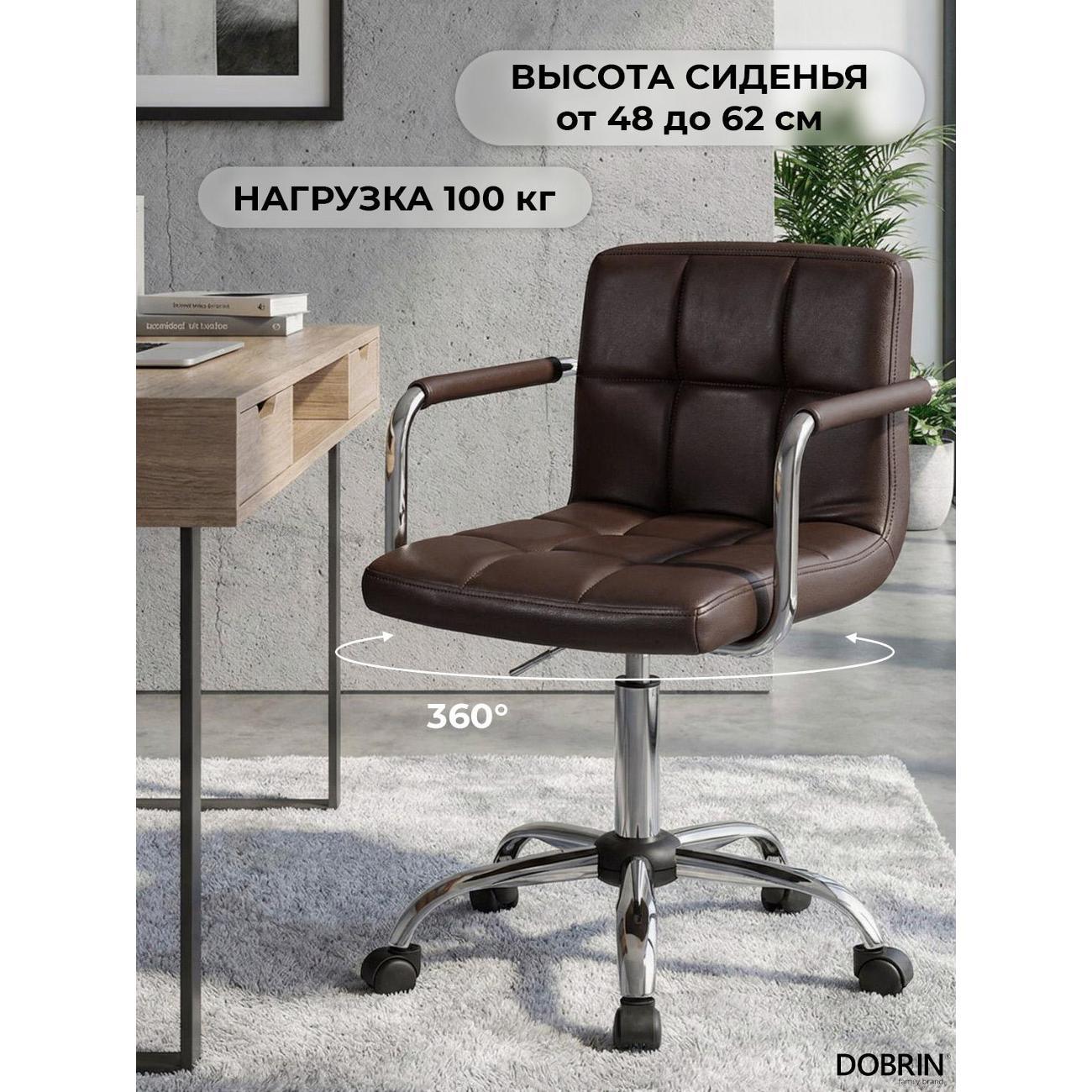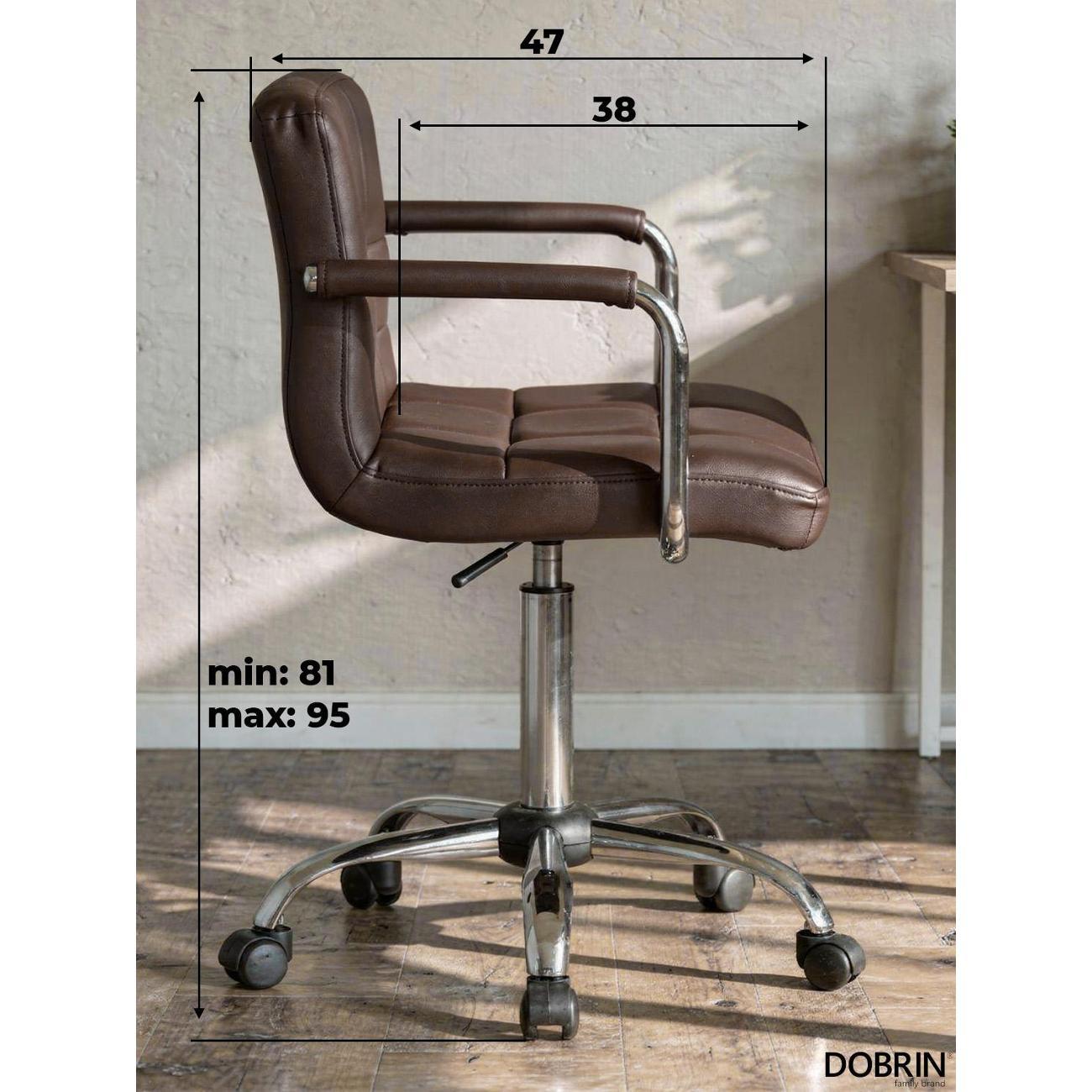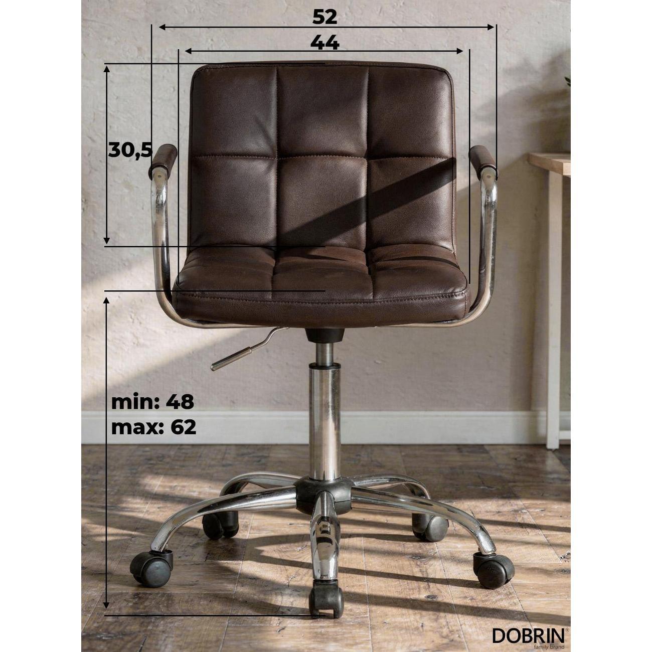 Офисное кресло для персонала DOBRIN TERRY (коричневый). Материал обивки искусственная кожа. Материал каркаса фанера. Материал основания металл. Размеры: высота 95(81) см, ширина 58 см, глубина 58 см, ширина и длина основания 58 см. Размеры сиденья: высота сиденья 62(48) см, ширина сиденья 44 см, глубина сиденья 38 см, толщина сиденья 5 см, высота спинки 30,5 см. Офисные кресла на пятилучье. Форма сиденья квадратная, сиденье мягкое. Подлокотники с высотой 19 см. Офисные кресла с регулировкой высоты. Товар изготовлен по уникальному дизайну и эскизу DOBRIN с любовью к мебели. Максимальная нагрузка на офисные кресла для персонала 100 кг. Гарантийный срок 12 месяцев, минимальный срок службы от 5 лет. Комфорт, прочность и эргономичность данного кресла отлично подойдут для персонала компании, которые постоянно работают в офисе.
