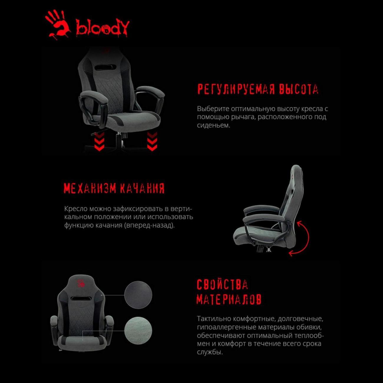 Вы можете купить Кресло компьютерное игровое A4Tech Bloody GC-110 в магазинах М.Видео по доступной цене. Кресло компьютерное игровое A4Tech Bloody GC-110: подробное описание, фото и отзывы реальных покупателей, характеристики, возможность скачать инструкции и подобрать аксессуары.