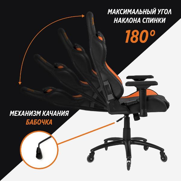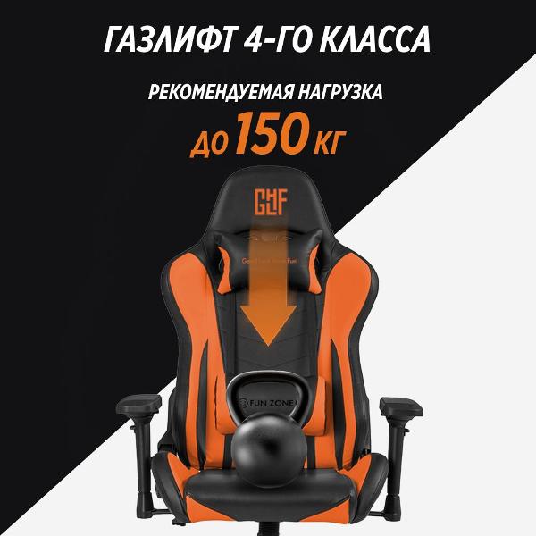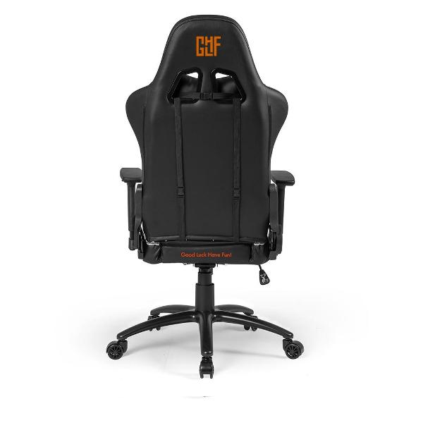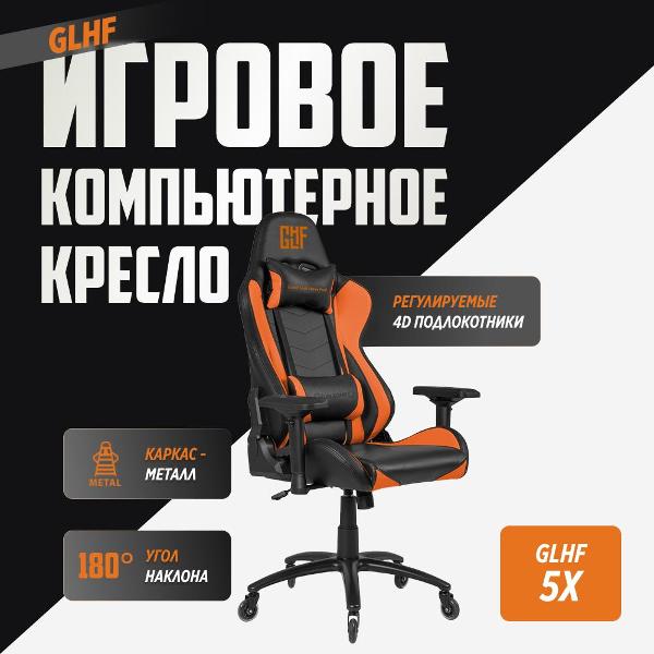 GLHF 5X 2024 — компьютерное игровое кресло, которое выполнено в черном и оранжевом цветах.