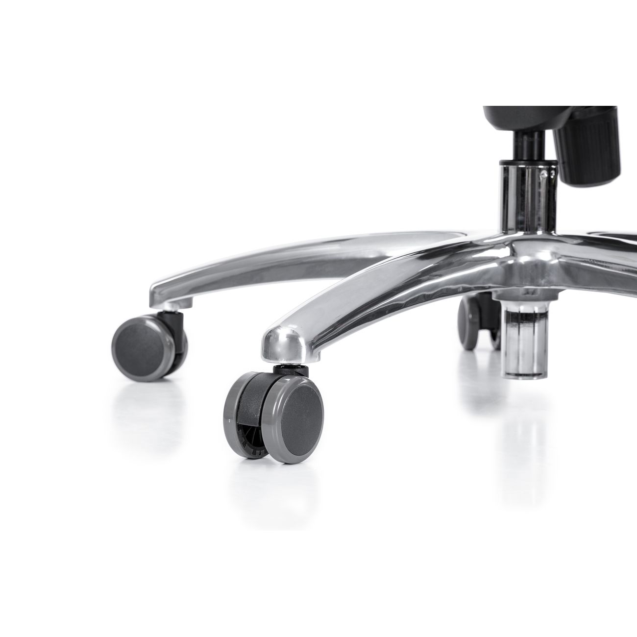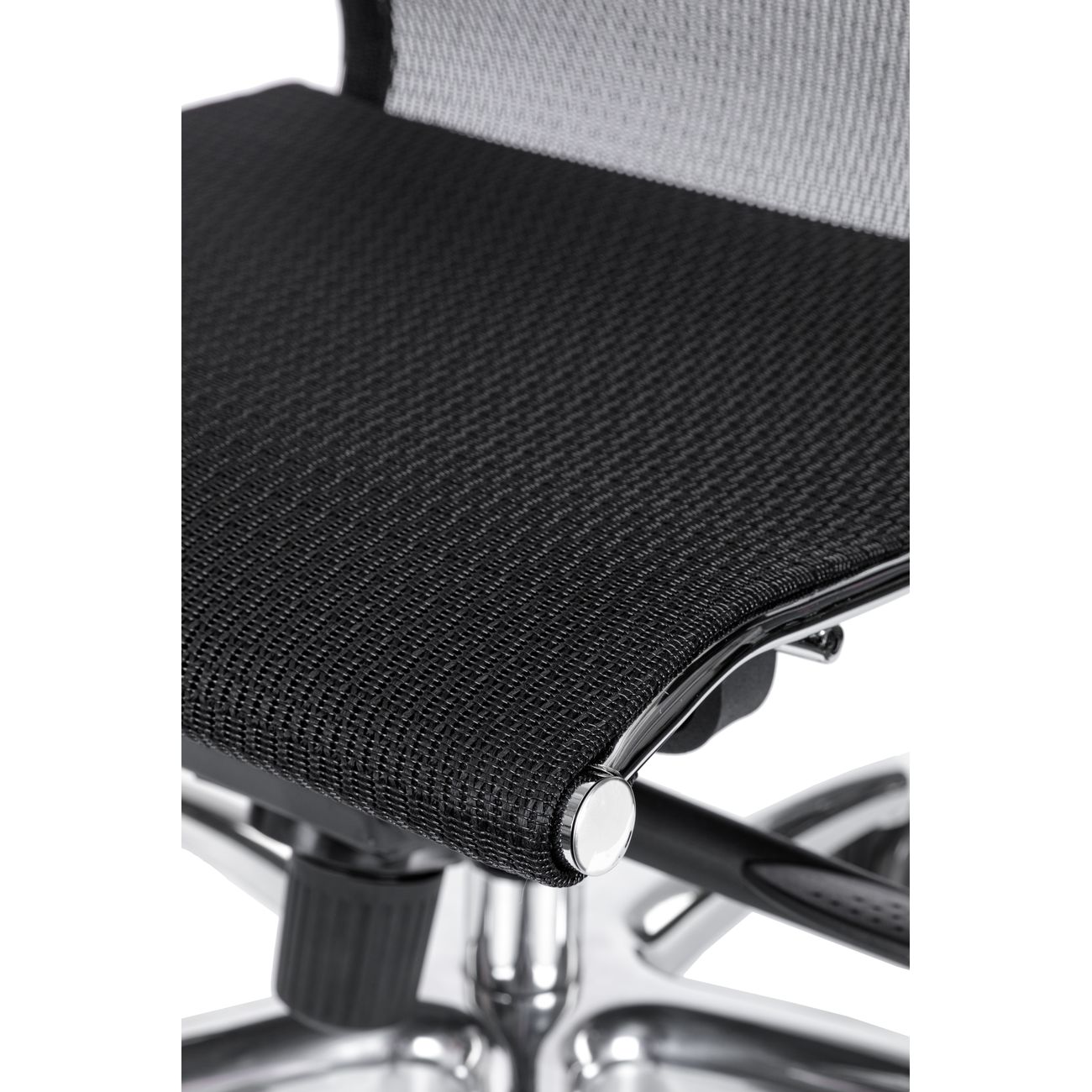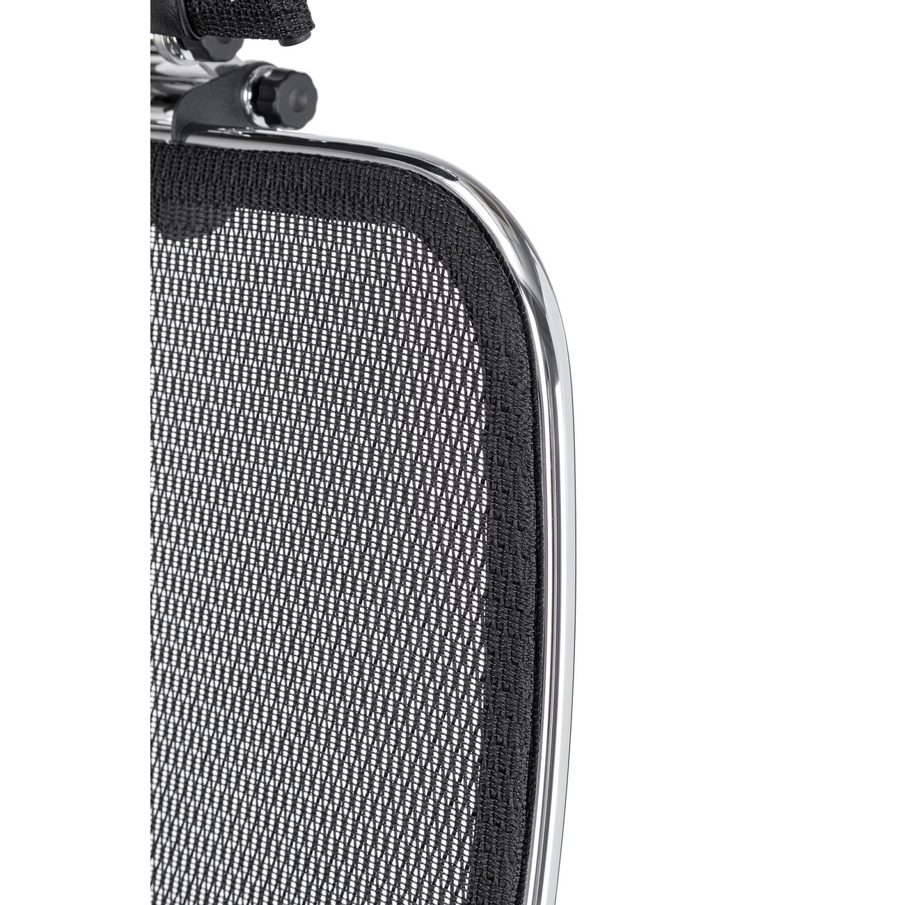 Металлический каркас с алюминиевой крестовиной выдерживает нагрузку до 120 кг. Основание дополнено колесиками для легкого перемещения. Модель габаритами 134х70х60 см весит 22,5 кг. Обивка выполнена из сетки и экокожи, что гарантирует оптимальную вентиляцию и простоту очищения. Используемые материалы обеспечивают длительный срок службы с сохранением изначальных внешних характеристик.