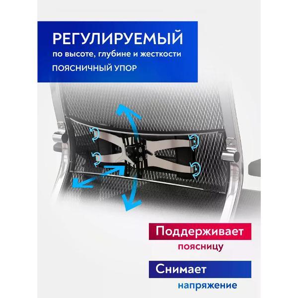 - Регулируемый поясничный подпор обеспечивает правильное положение и поддержку спины, равномерно распределяя нагрузку по всем позвонкам, помогает сохранять естественное кровоснабжение органов;