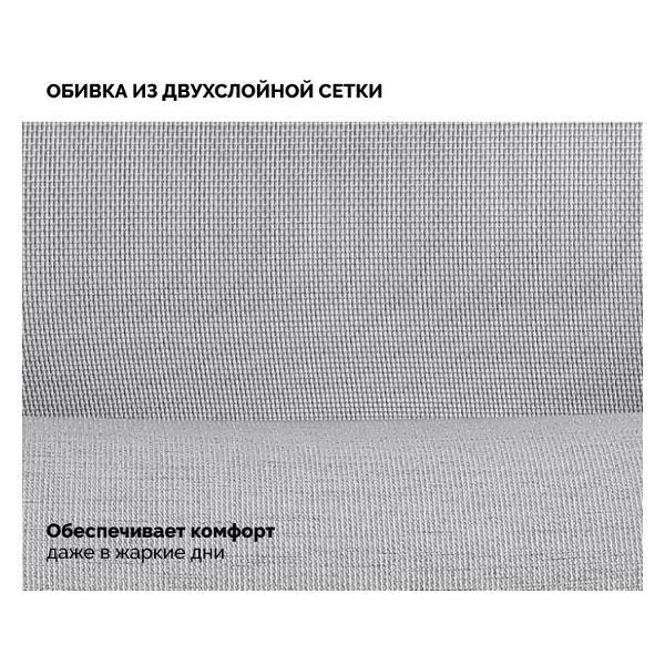 Сидение выполнено из формованной пены, которая устойчива к деформации и надолго сохраняет форму. Обивка из двухслойной сетки и прочной ткани делает кресло удобным в любое время года.