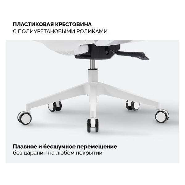 Пластиковая крестовина с полиуретановыми роликами обеспечивает плавное и бесшумное перемещение без царапин на любом покрытии.