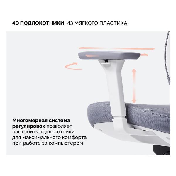 4D подлокотники регулируются в 4-х плоскостях для максимального комфорта пользователя, а подголовник настраивается по высоте и углу наклона.