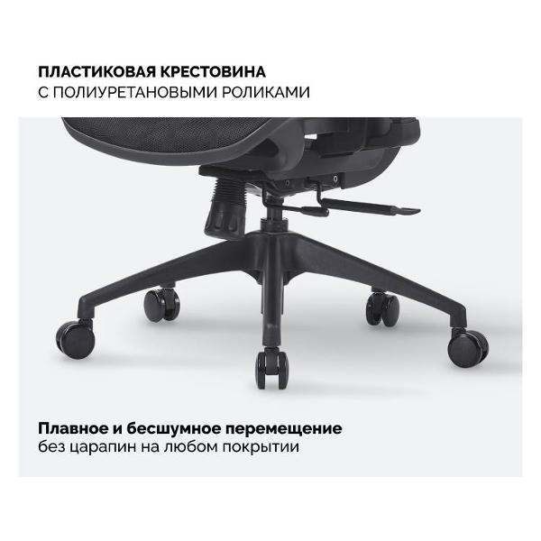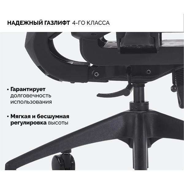 Обивка выполнена из кевларовой сетки, устойчивой к растяжению и механическим повреждениям, в том числе к царапинам от когтей домашних животных. Сиденье надёжно удерживается прочным газлифтом 4-го класса, а пластиковая крестовина с полиуретановыми роликами обеспечивает плавное и бесшумное перемещение по любым поверхностям.
