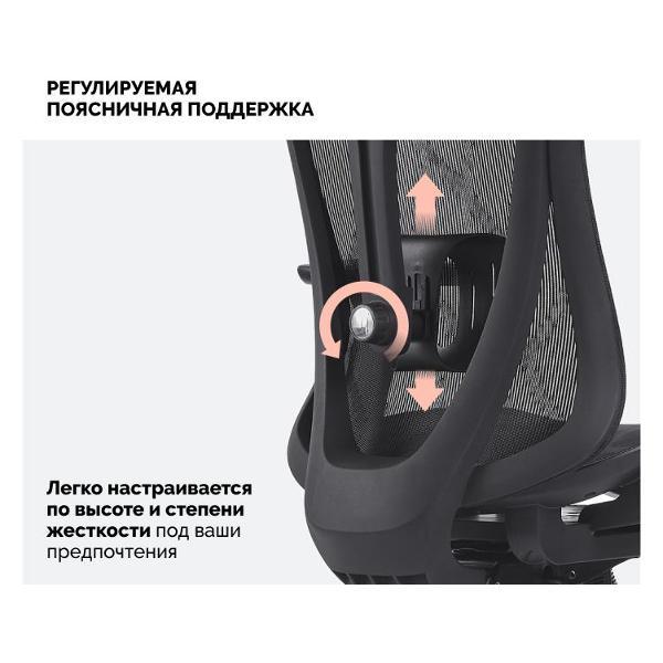 Регулируемая поясничная поддержка позволяет настроить высоту и степень жёсткости под индивидуальные предпочтения, обеспечивая правильное положение спины даже при долгой работе. Синхромеханизм с фиксацией спинки в трёх положениях делает кресло подходящим для продуктивных задач и для отдыха.